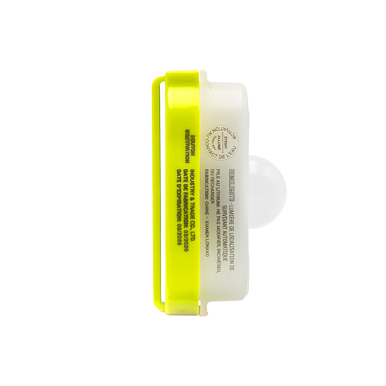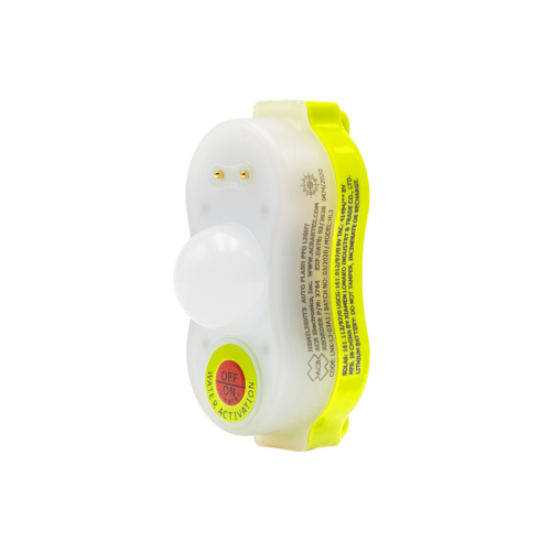 The high-intensity flashing LED light automatically activates for 20+ hours when it comes in contact with salt or fresh water, and can be deactivated simply by pushing the red button. Installation is quick and easy (the HemiLight 3 can be retrofitted to almost any style life jacket in a matter of seconds).