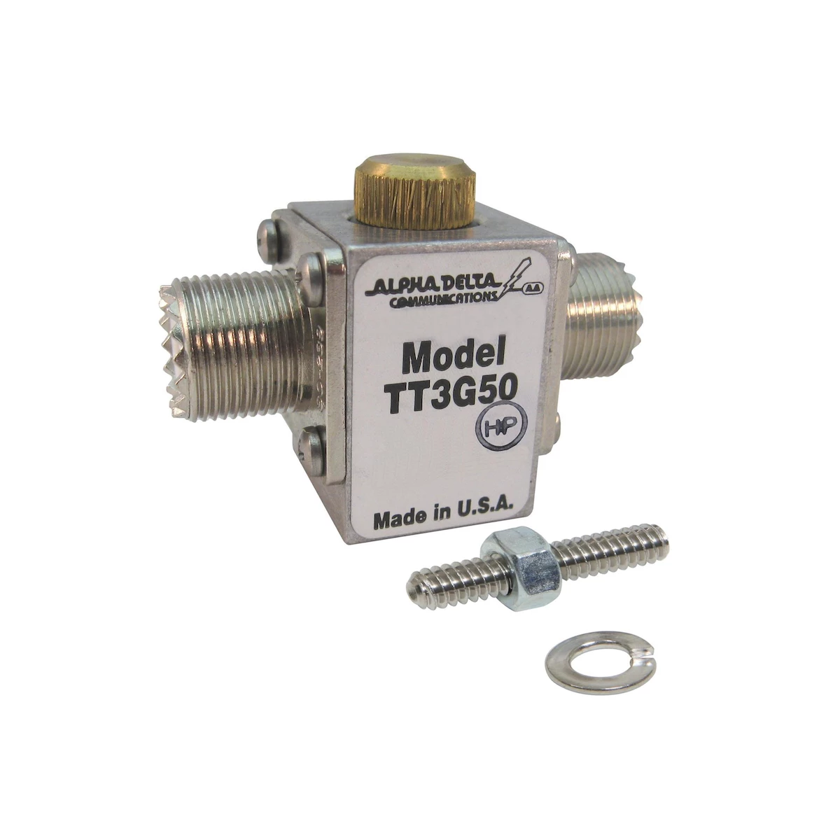 They are not DC-blocked, so they will pass control voltages in applications requiring the coaxial cable to carry both RF and DC voltage. They may be easily mounted for the most effective grounding with a 1/4-20 bolt or stud (depending on model) in a single hole or as a bulkhead-mount through the grounding panel.