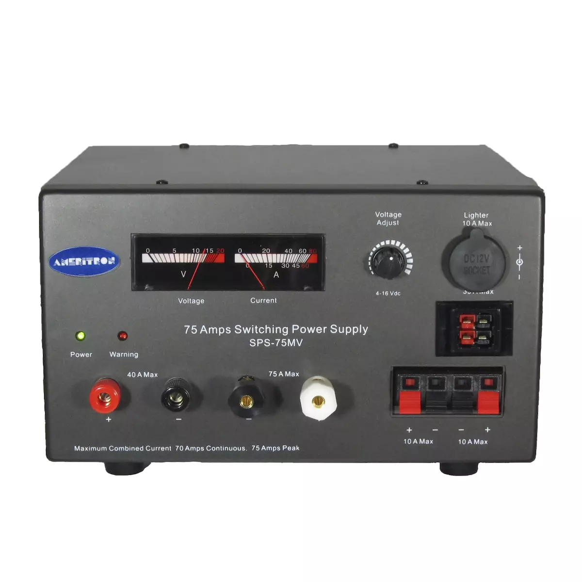 SPS-75MV delivers 75 amps maximum and 70 amps continuously without even flexing its muscles. Plugs into any 110 VAC wall outlet.