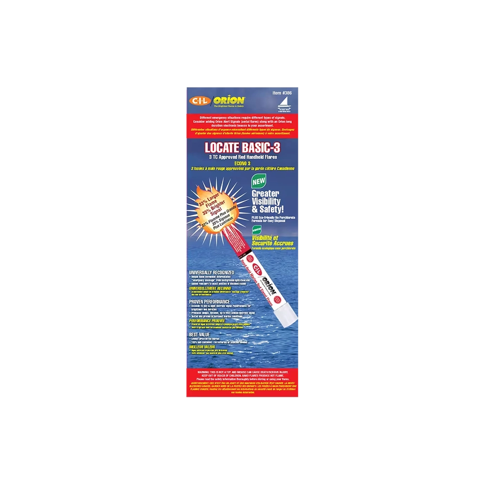 Locate signals attract attention day or night and serve as a beacon for rescuers to identify your position. To keep rescuers on course, it is recommended that you carry a minimum of 6 hand-held red signal flares (in addition to aerial flares.)