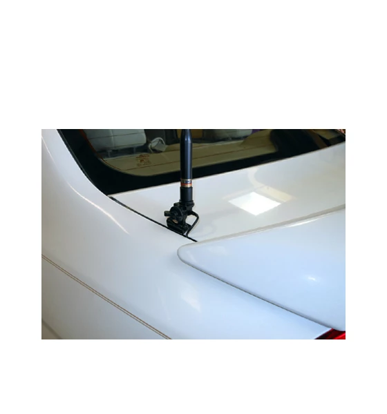 The mount is adjustable in 2-planes so it rotates to compensate for the trunk angle or to set the antenna vertical even on vertical doors like rear truck doors, van, SUV doors, etc…