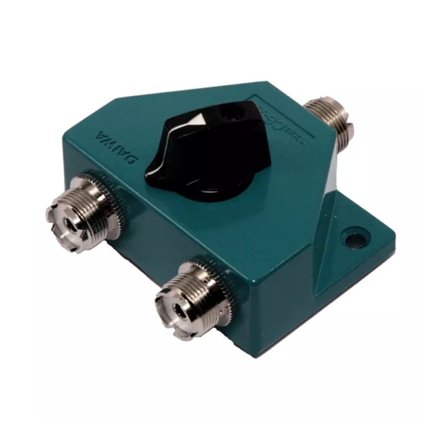 2 position coax switch with UHF connectors.