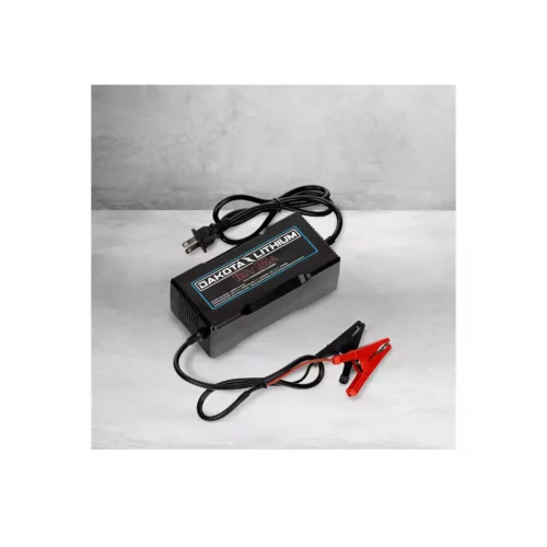 12V 10A LiFePO4 charger included. Dakota Lithium 12V batteries should be charged at 14.4 volts, higher than AGM or lead acid. Lead acid chargers will work, but will only charge the battery to 80% of capacity.