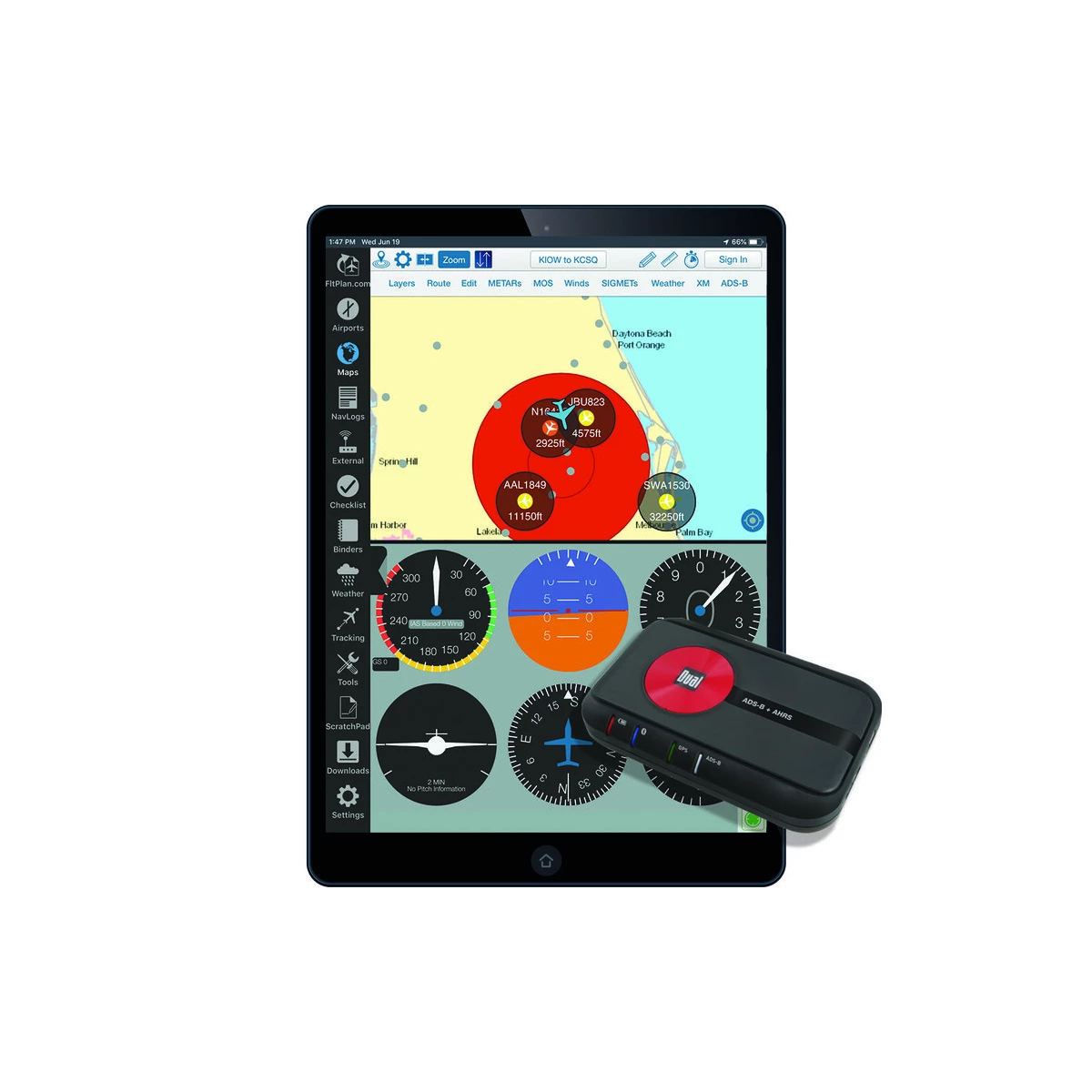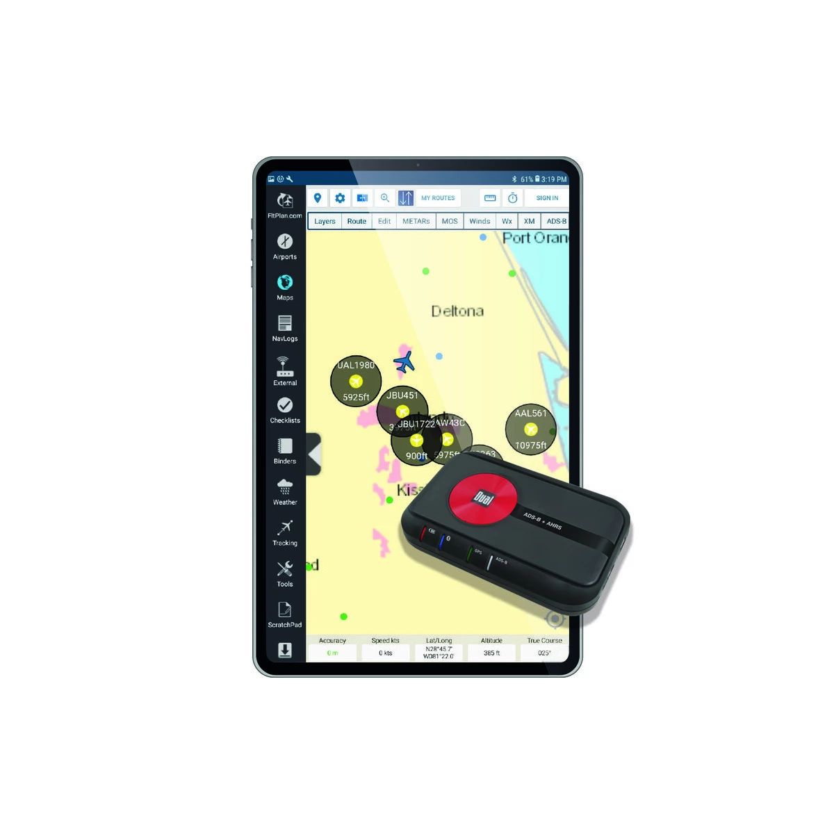 Introduced more than a decade ago by the FAA, ADS-B (Automatic Dependent Surveillance-Broadcast) provides weather and traffic information to all aircraft equipped with an ADS-B receiver, such as the XGPS190, subscription–free. The ADS-B weather & traffic data is displayed on a compatible EFB app (sold separately) on an iPad, Android or Windows tablet.