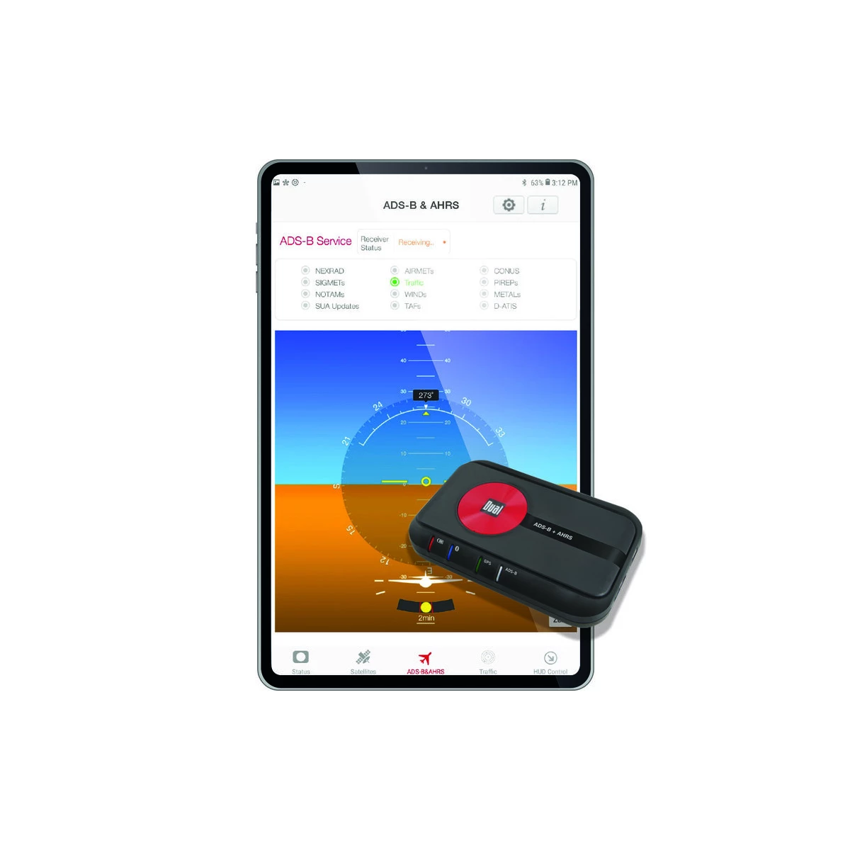 Dual band 978/1090 MHz frequencies, and AHRS artificial horizon for EFB apps with synthetic visions