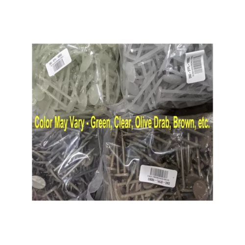 DX Engineering Radial Wire Biodegradable Anchor Pins are intended for turf or softer ground where they may be pushed in (they feature a wide, flat head for your thumb) or lightly tapped with a tool head–NOT driven in with a hammer. Since they are a plastic-like material, they will be subject to breakage when used in rocky or hard soil or subjected to vigorous impact.