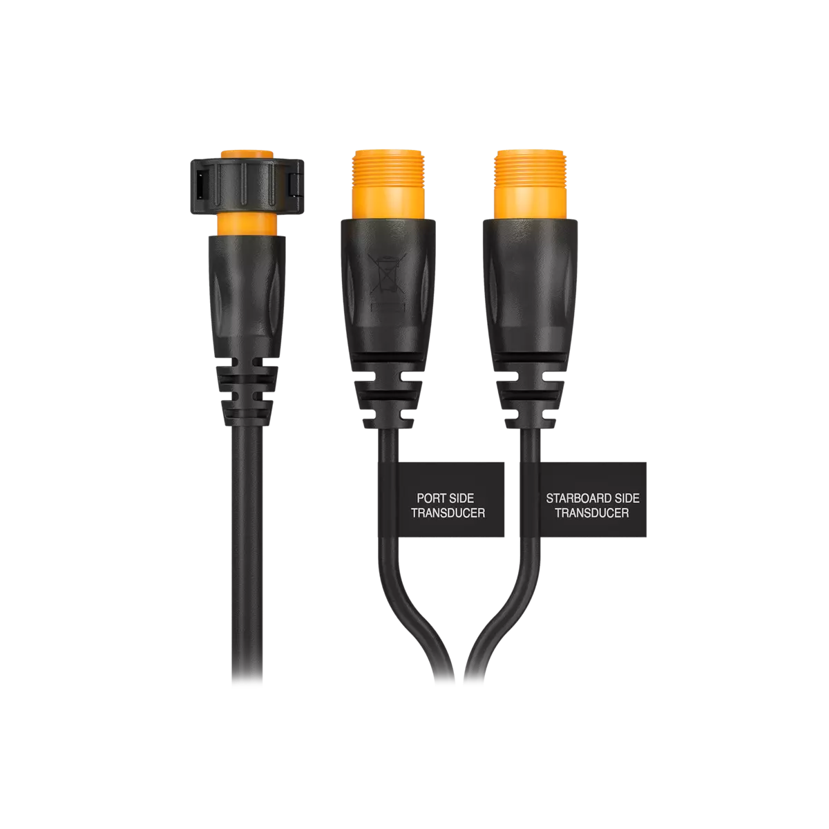 Connect a port/starboard pair of thru hull or transom mount transducers to the sonar unit with this 12-pin Y-cable. This cable allows the use of two different transducers to produce the left and right SideVĂĽ images to avoid engine lower unit or keel/hull shadowing. The right-side (starboard) transducer is used for Traditional, ClearVĂĽ, and right- SideVĂĽ images plus water temperature and transducer ID. The left-side (port) transducer is used for left-SideVĂĽ images. Compatible with all 12-pin GT transducers.