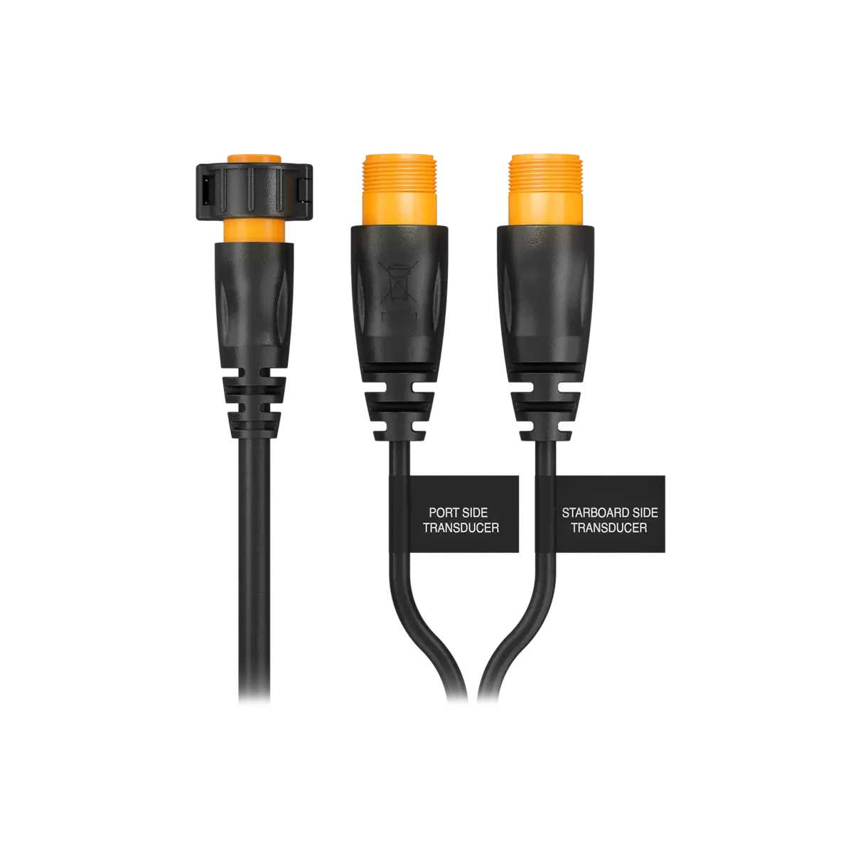 Connect a port/starboard pair of thru hull or transom mount transducers to the sonar unit with this 12-pin Y-cable. This cable allows the use of two different transducers to produce the left and right SideVĂĽ images to avoid engine lower unit or keel/hull shadowing. The right-side (starboard) transducer is used for Traditional, ClearVĂĽ, and right- SideVĂĽ images plus water temperature and transducer ID. The left-side (port) transducer is used for left-SideVĂĽ images. Compatible with all 12-pin GT transducers.