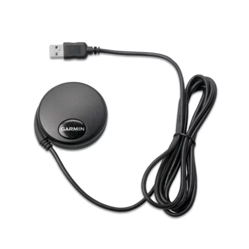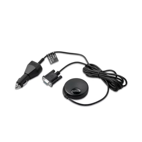 GPS 18x PC (010-00321-34)Â has DB-9 pin serial connector with 12-volt cigarette lighter adapter; can output data in NMEA 0183 format (industry standard) or proprietary Garmin format.