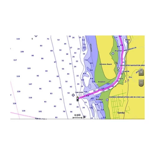 This feature gives your chartplotter paper chartlike views of NOAA-surveyed areas in which points of interest are labeled with corresponding longitude and latitude information.