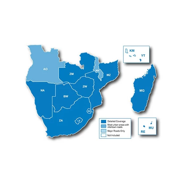 Features coverage for Angola, Botswana, Lesotho, Madagascar, Malawi, Mauritius, Mayotte, Mozambique, Namibia, Republic of South Africa, Reunion, Swaziland, Zambia and Zimbabwe. Specifically: