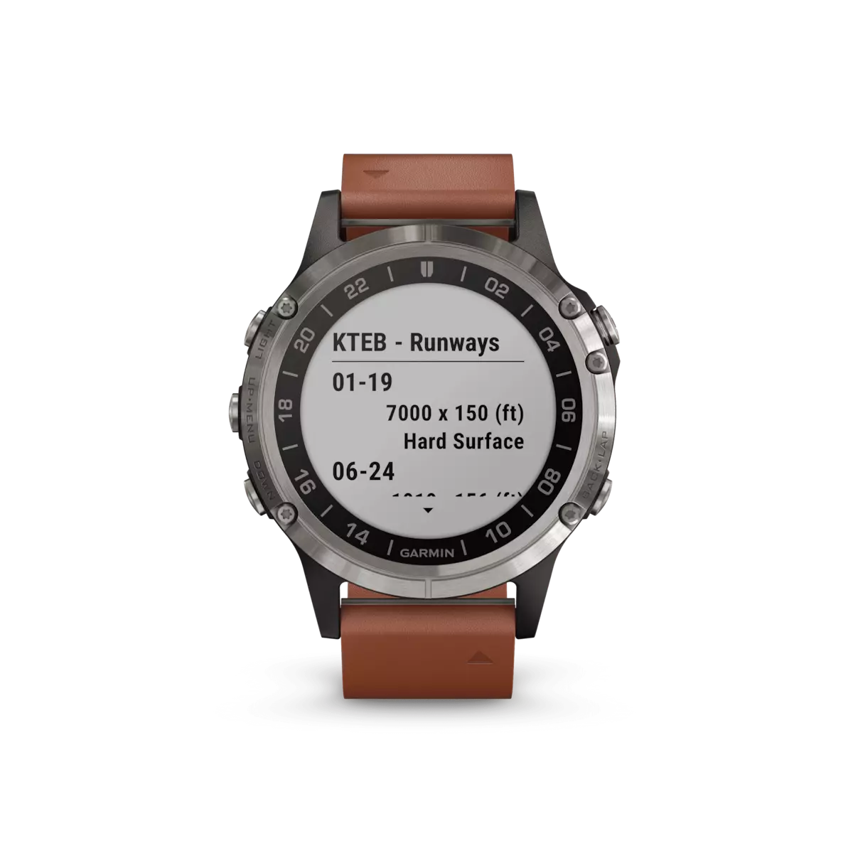With wireless connectivity to your smartphone, the D2 Delta series can make quick work of flight logging and other record keeping tasks. During takeoff, the watch will detect your aircraft’s change in altitude and automatically initiate the logbook function — recording date, duration, total flight time and route. Then after your flight is complete, it will sync this logbook data via your smartphone to flyGarmin.com® and the Garmin Pilot app for safekeeping.