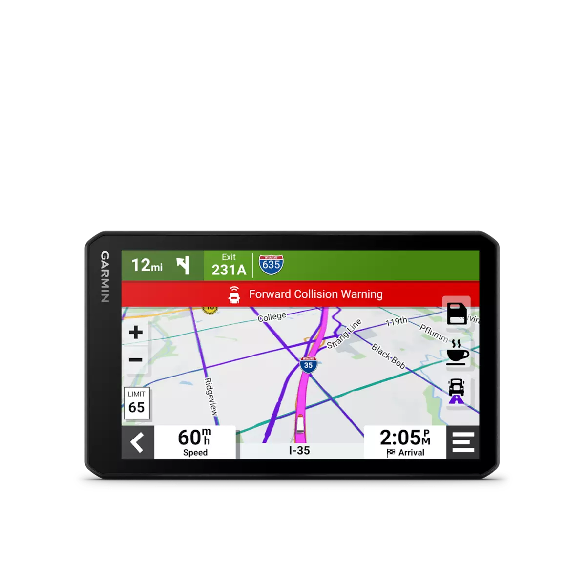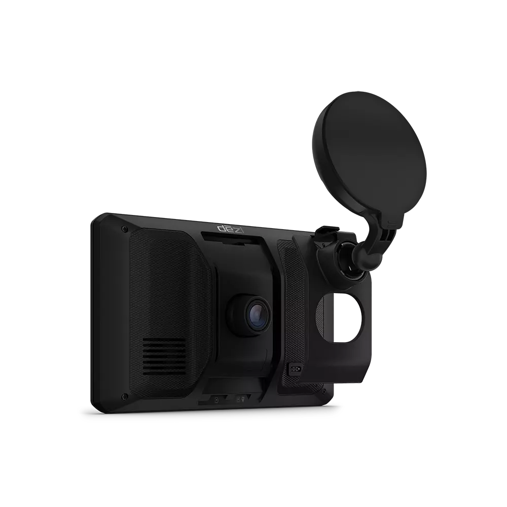 The dēzlCam OTR710 navigator is your eyewitness over the road. It features a built-in dash cam¹ to help protect your driving reputation, custom truck routing² based on the size and weight of your rig and leading-edge arrival planning with high-resolution BirdsEye Direct Satellite Imagery showing overhead views as you approach your destination. The integrated high-definition 1080p dash camera with wide 140-degree field of view continually records the drive and automatically saves video of any incidents. Drivers can easily view and share saved clips of videos using the dēzl app on a compatible smartphone. What’s more, the built-in camera enables advanced driver alerts including forward collision and lane departure warnings to help increase situational awareness during the long haul.