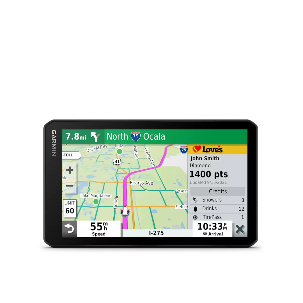 Pair this navigator with the dēzl app to view your travel plaza loyalty points at participating providers, including Love’s Travel Stops and Pilot Travel Centers LLC® across the U.S.