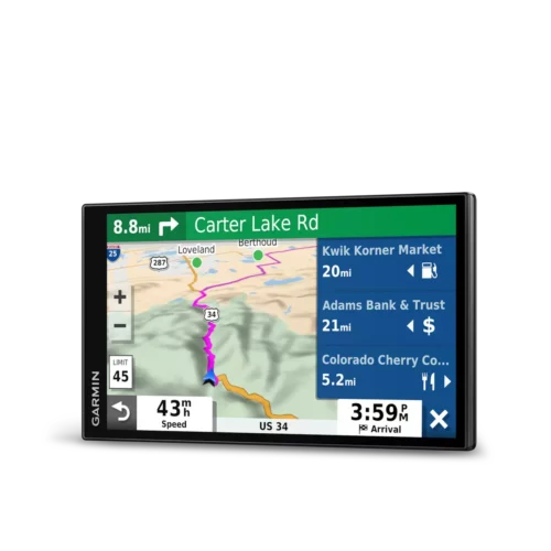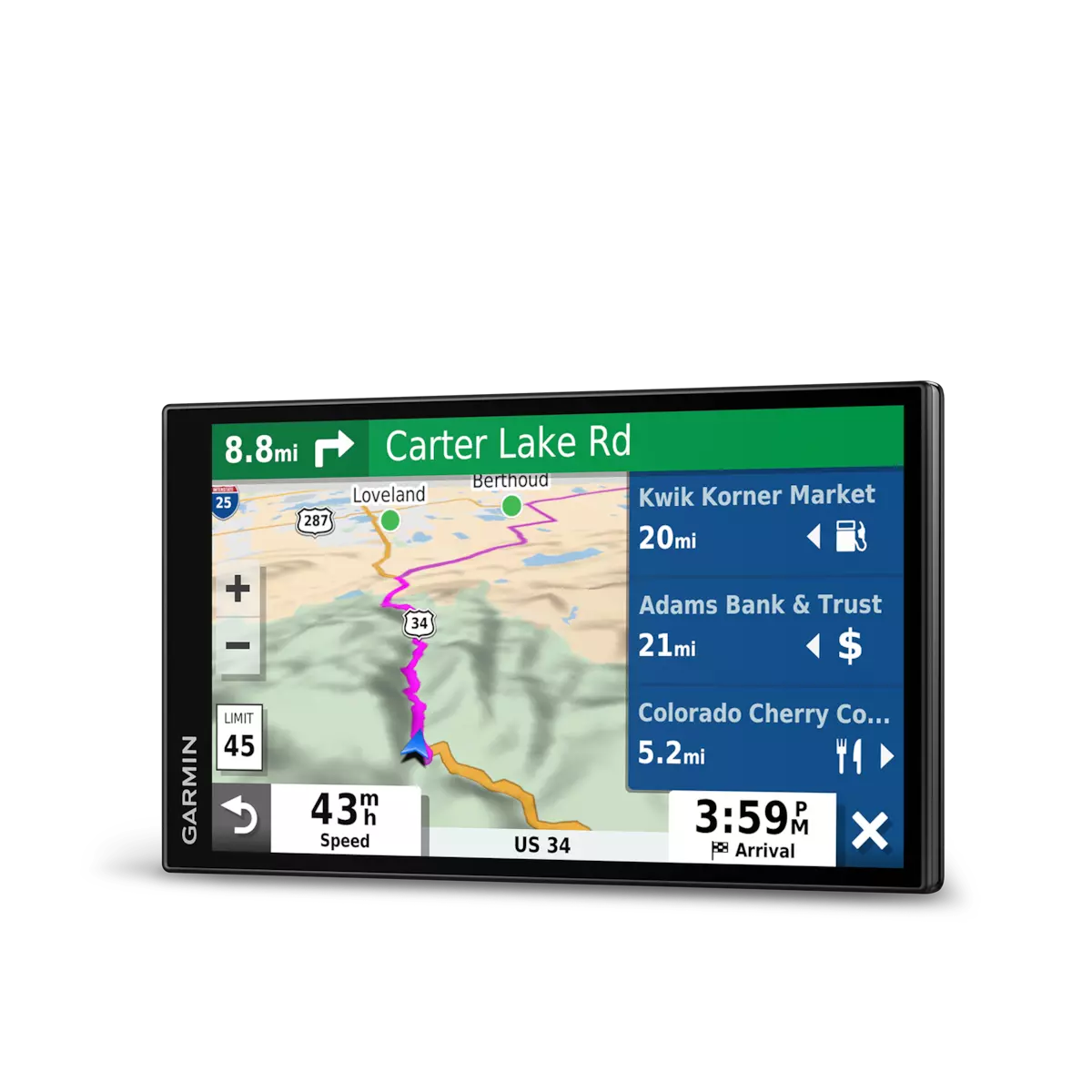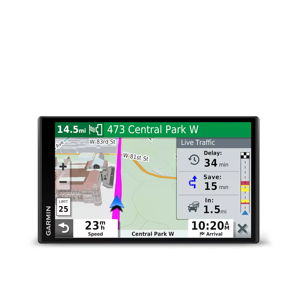 For drivers who love new adventures while traveling, the Garmin DriveSmart 65 GPS navigator is the ultimate road trip companion. Featuring simple menus and easy-to-read maps, Garmin DriveSmart 65 lets you view turn-by-turn directions at a glance on a bright 6.95” edge-to-edge touchscreen display. Traffic and map updates are included along with helpful driver alerts to encourage safer driving.
