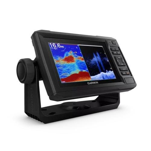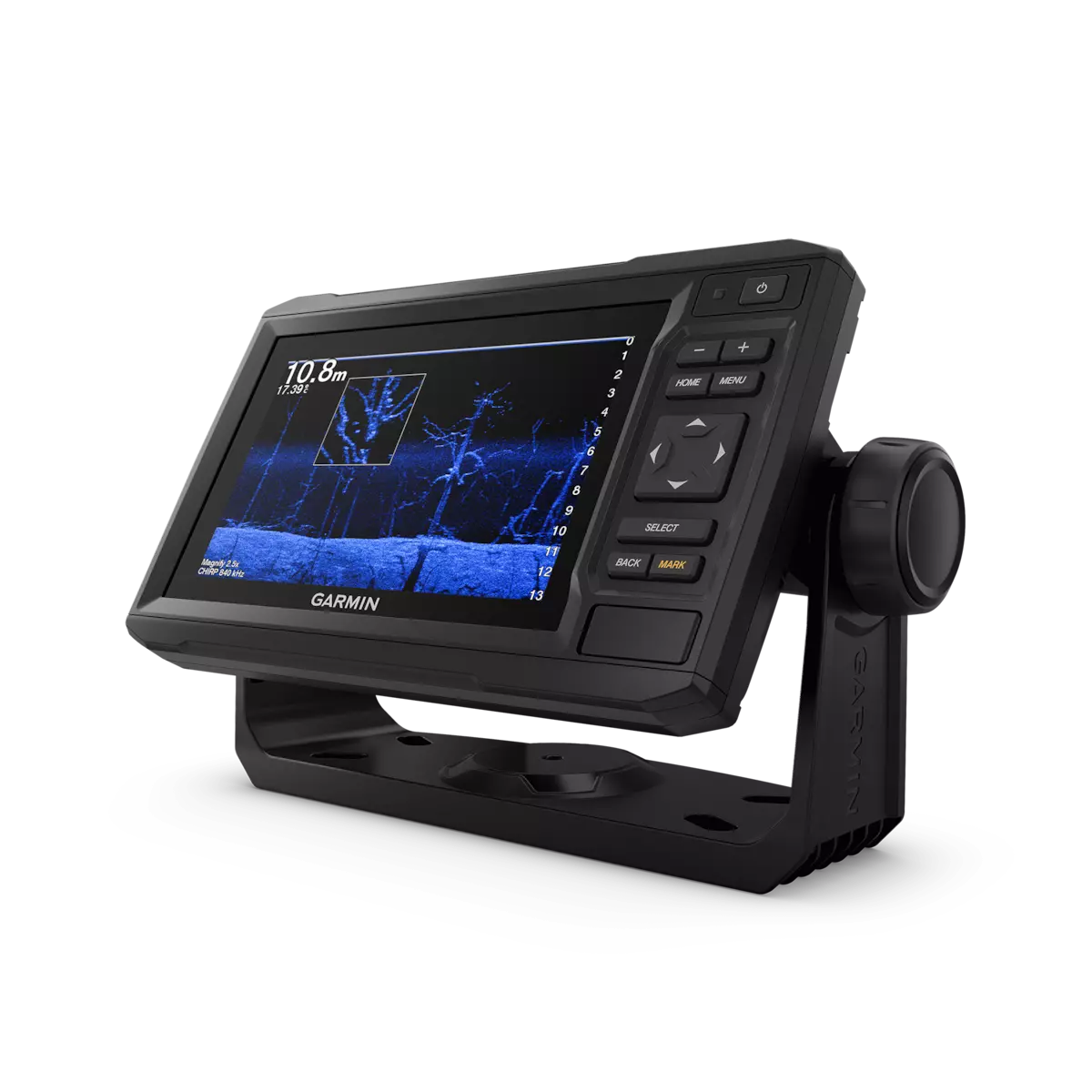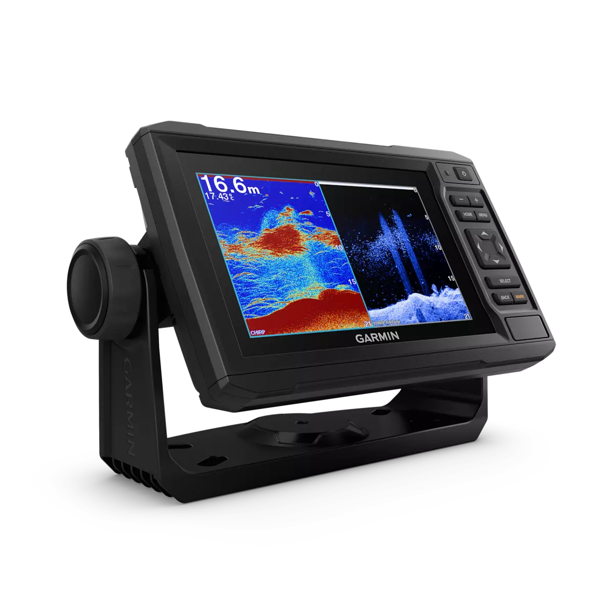 The sunlight-readable 6” touchscreen chartplotter features a quick-release bail mount, and the transducer bundle adds Ultra High-Definition scanning sonar and CHIRP traditional sonar.