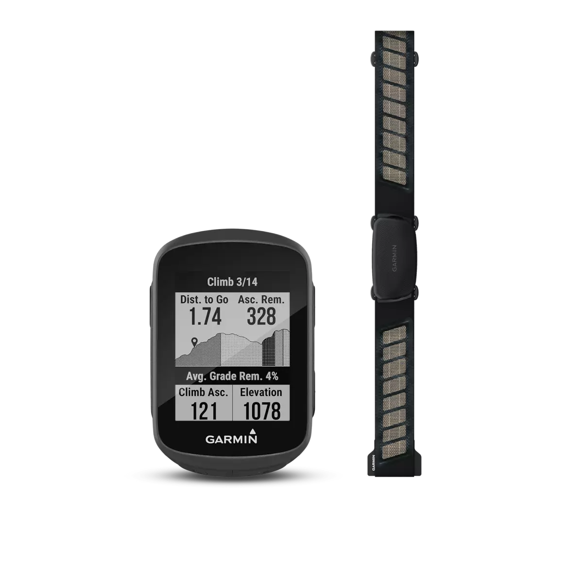 Edge 130 Plus uses multiple satellite systems (GPS, GLONASS and Galileo) to track in more challenging environments than GPS alone. A built-in altimeter also shows how high you’ve ridden.