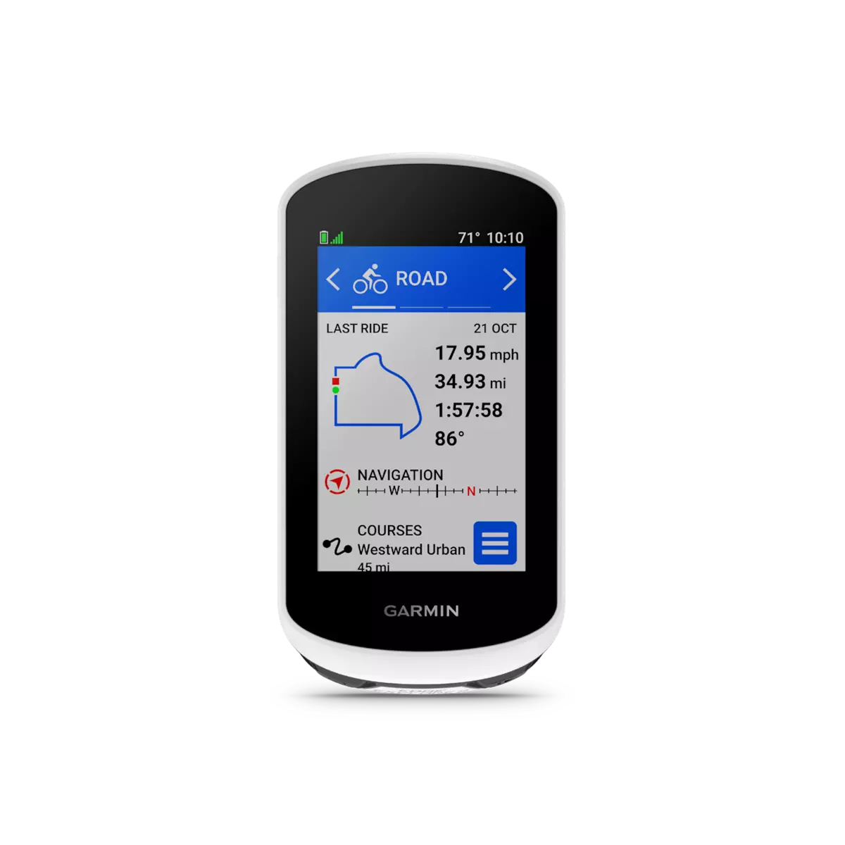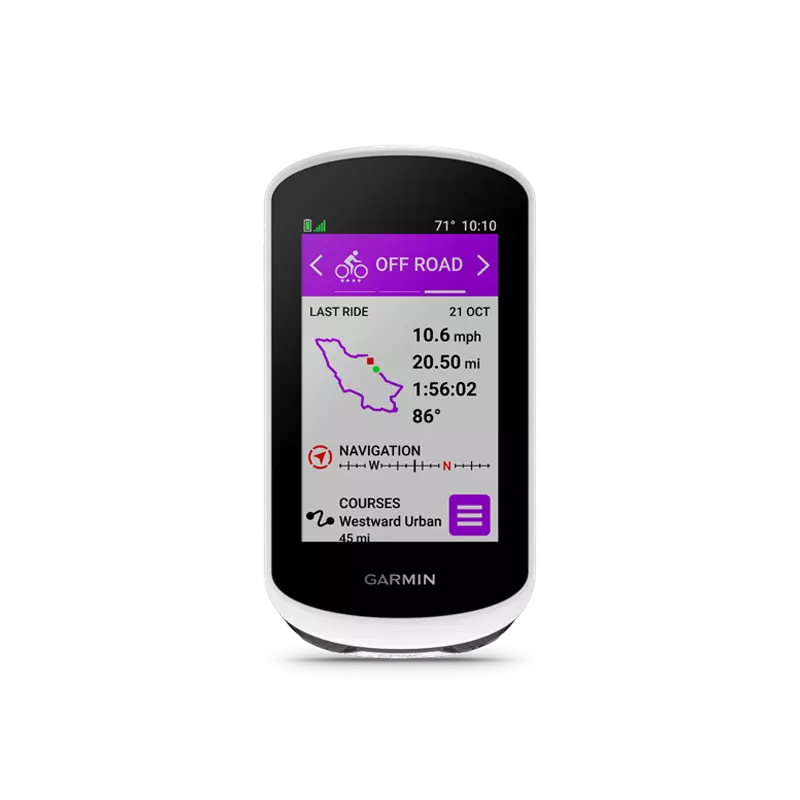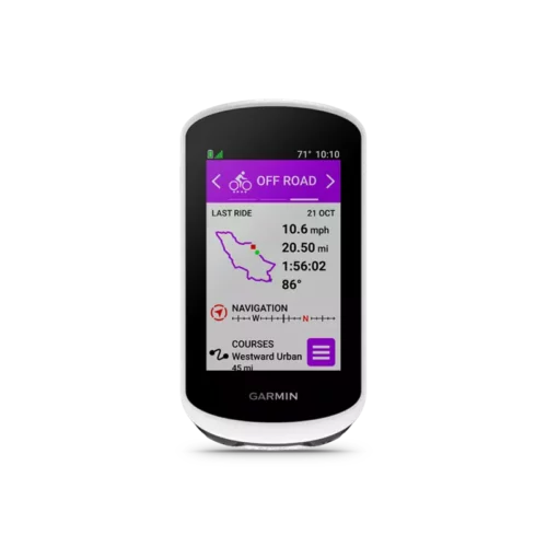 Easy-to-use GPS bike computer with 3” high-resolution, glove- and rain-friendly touchscreen that’s visible even in direct sunlight.