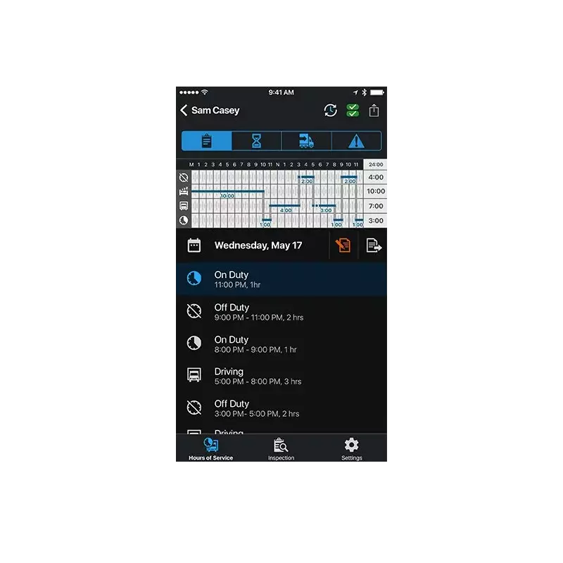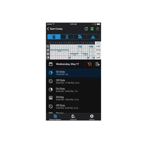 - Hours of Service (HOS) recording complies with FMCSA ELD mandates