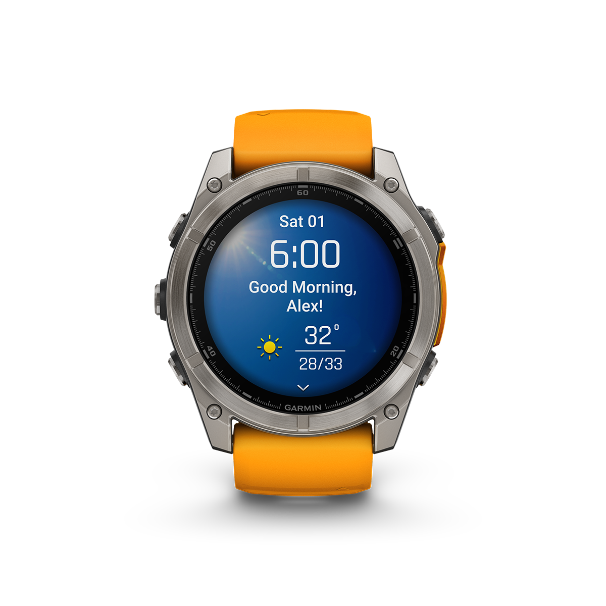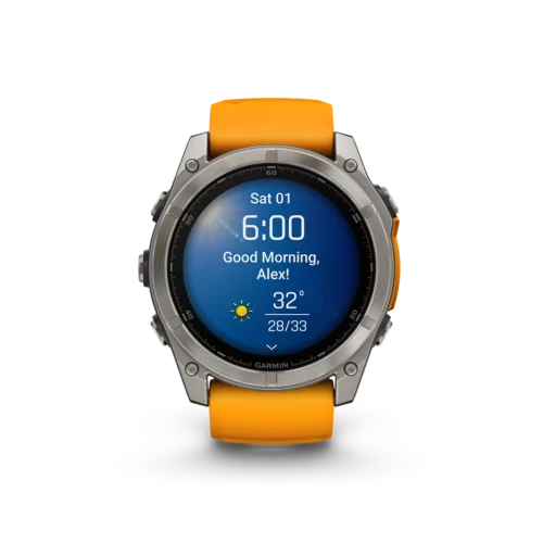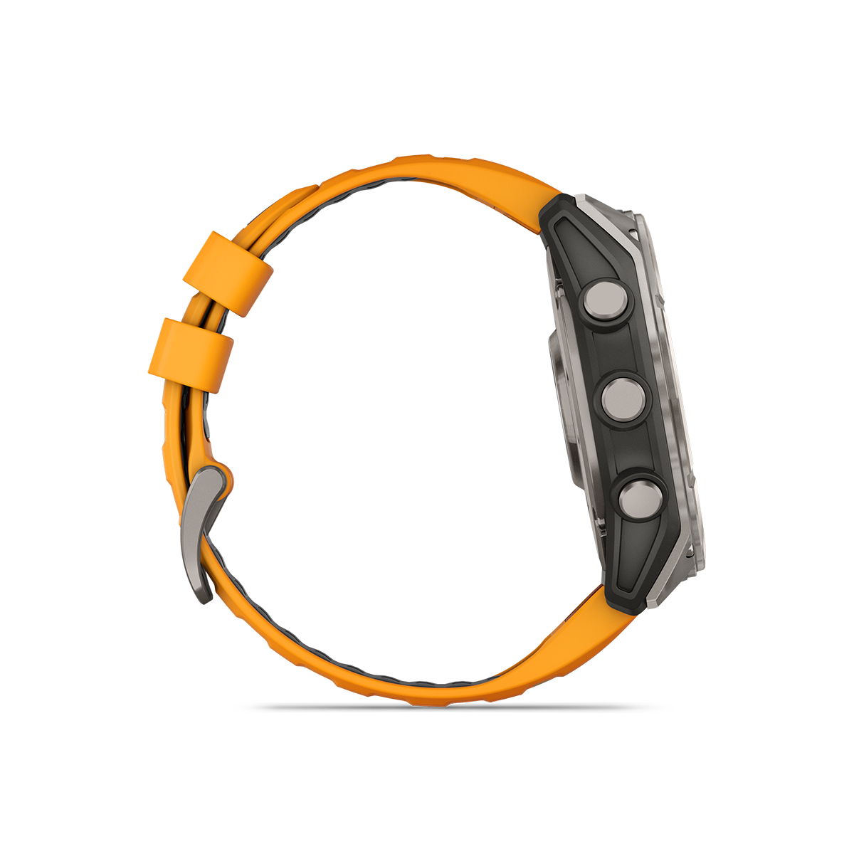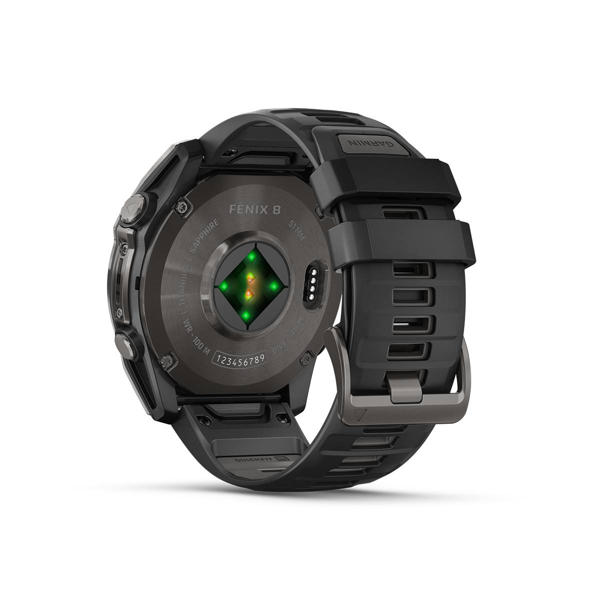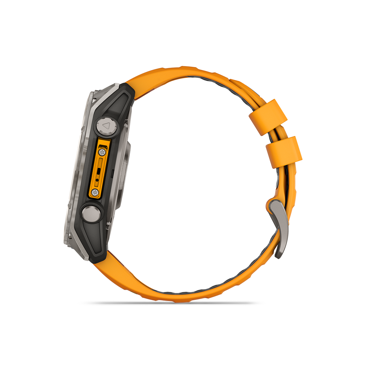 fenix 8 is built to endure with options that include a scratch-resistant sapphire lens, titanium bezel and rear cover. The new sensor guard protects essential sensors and leakproof buttons provide a 100-meter water rating and 40-meter dive rating. The watch is tested to U.S. military standards for thermal, shock and water resistance.