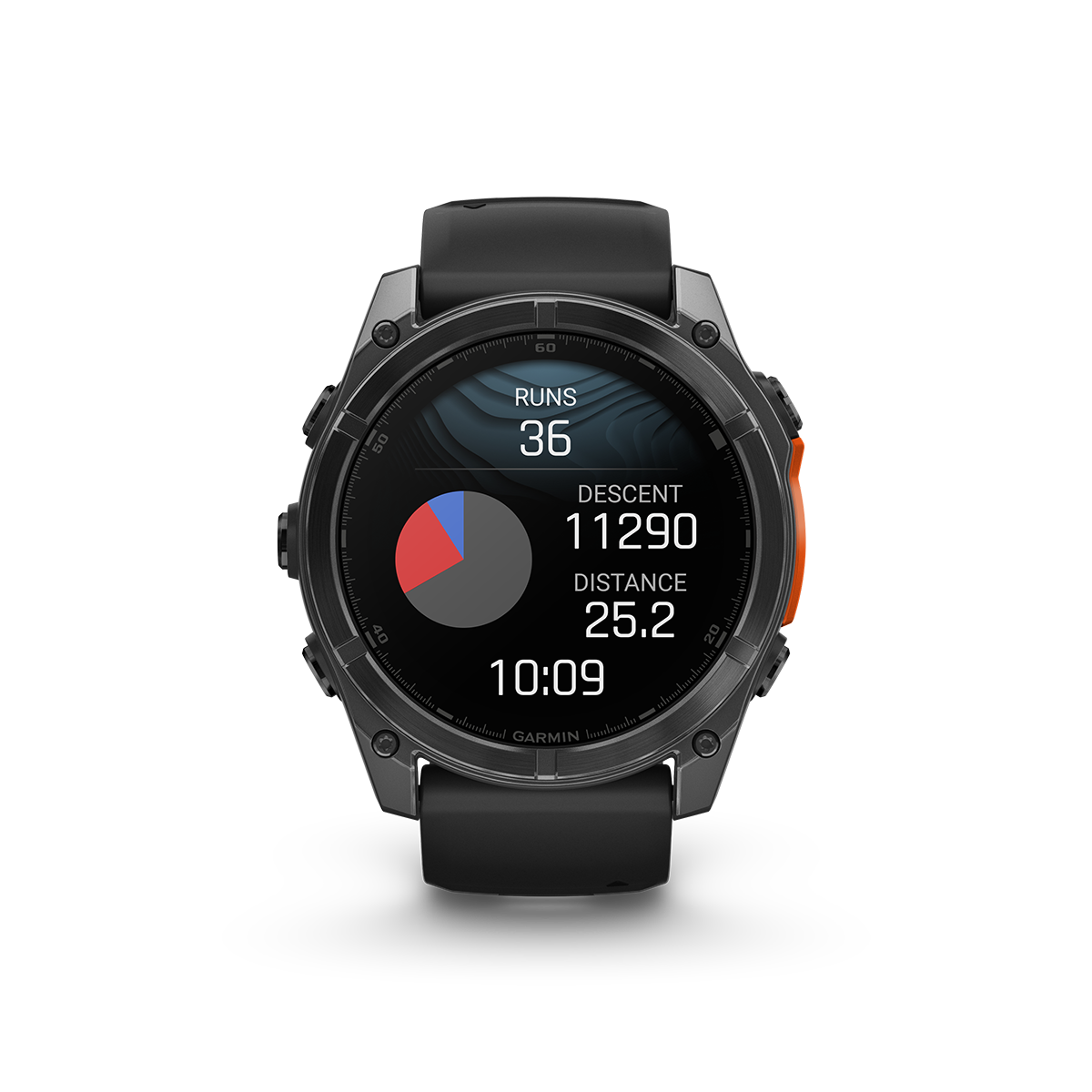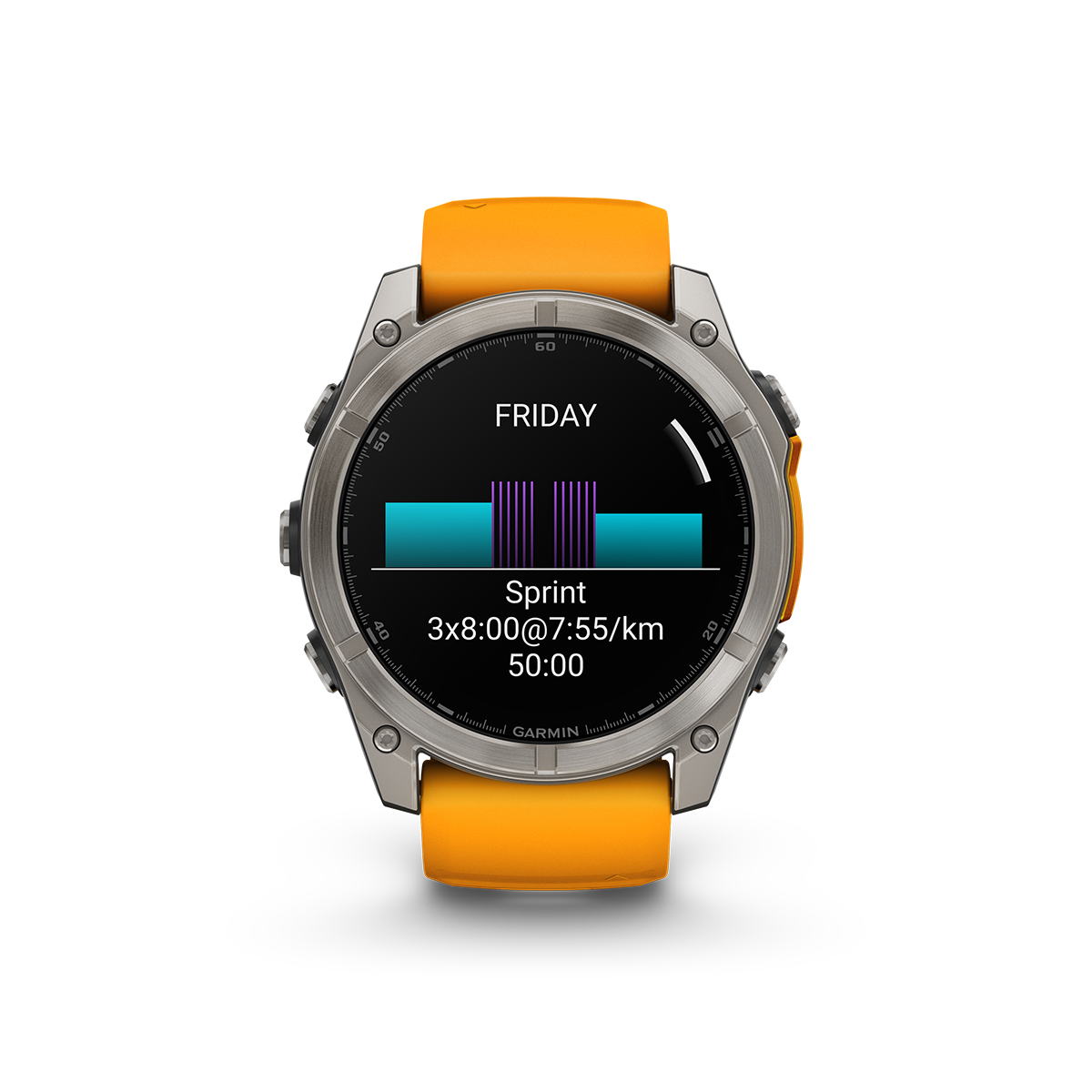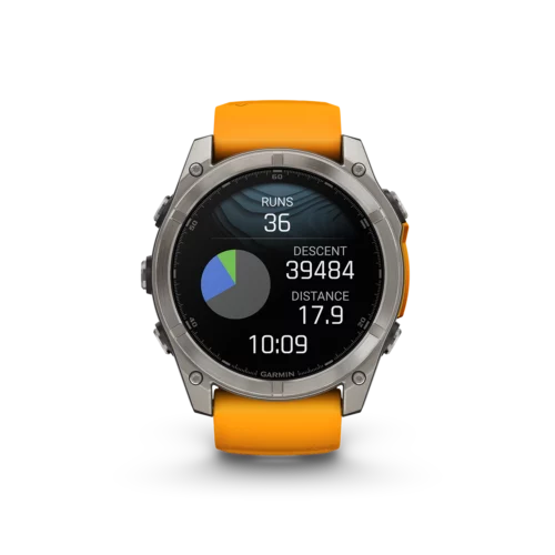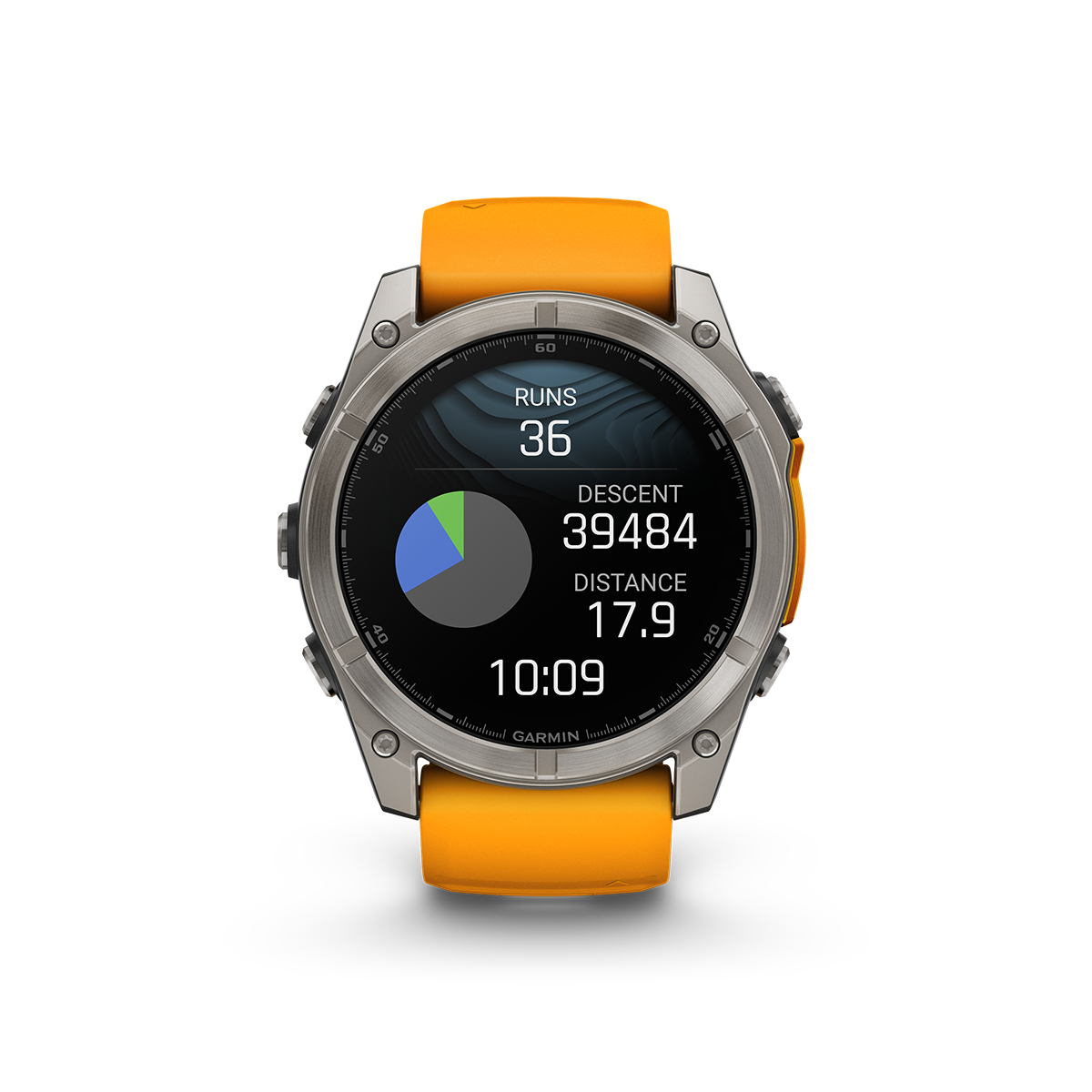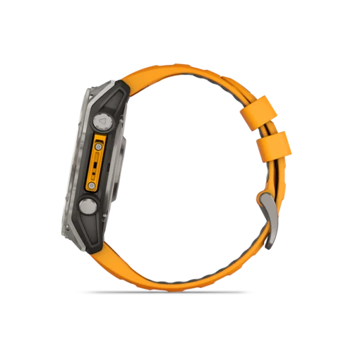fenix 8 is built to endure with options that include a scratch-resistant sapphire lens, titanium bezel and rear cover. The new sensor guard protects essential sensors and leakproof buttons provide a 100-meter water rating and 40-meter dive rating. The watch is tested to U.S. military standards for thermal, shock and water resistance.