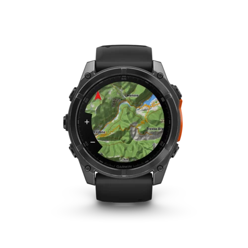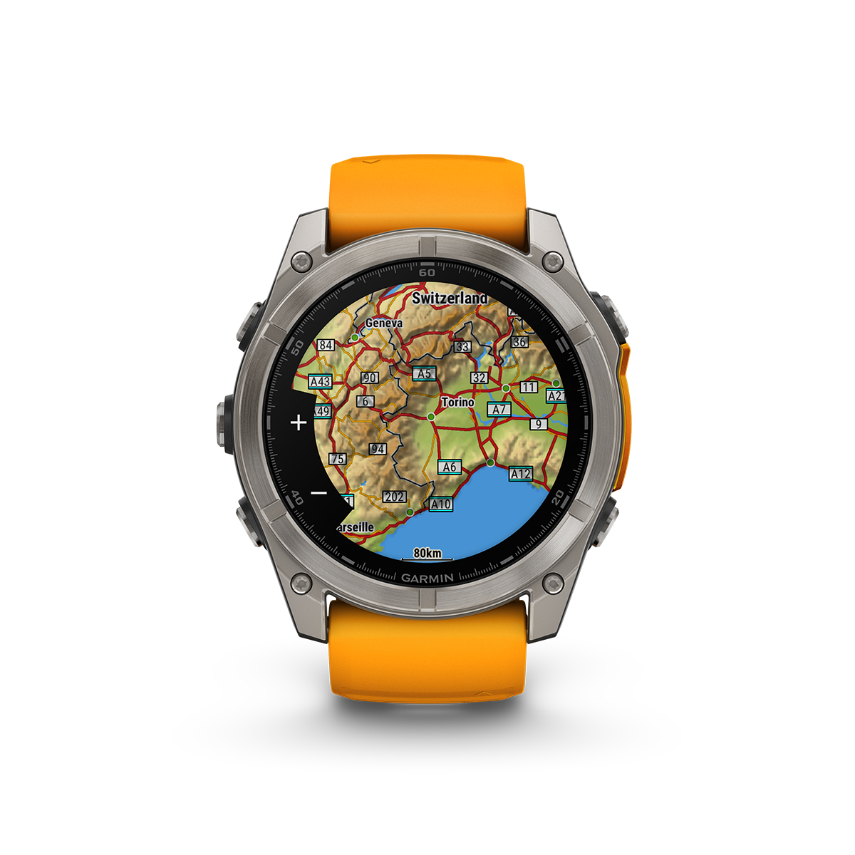 fenix 8 now offers options with a bright AMOLED display to make detailed information and mapping easy to read at a glance, while still providing great battery life with up to 29 days in Smartwatch mode.