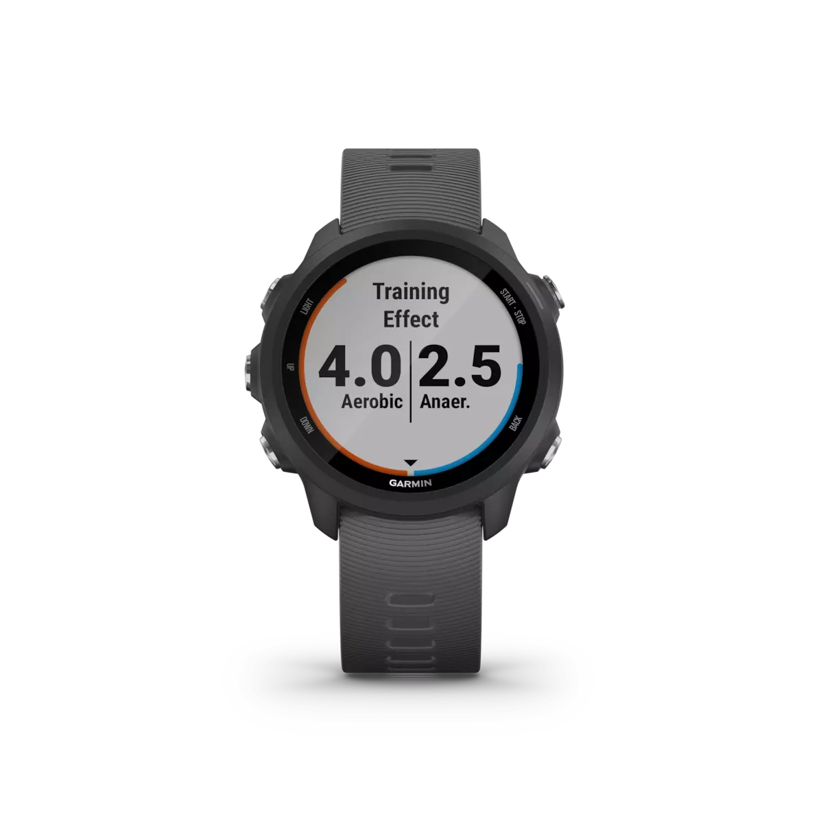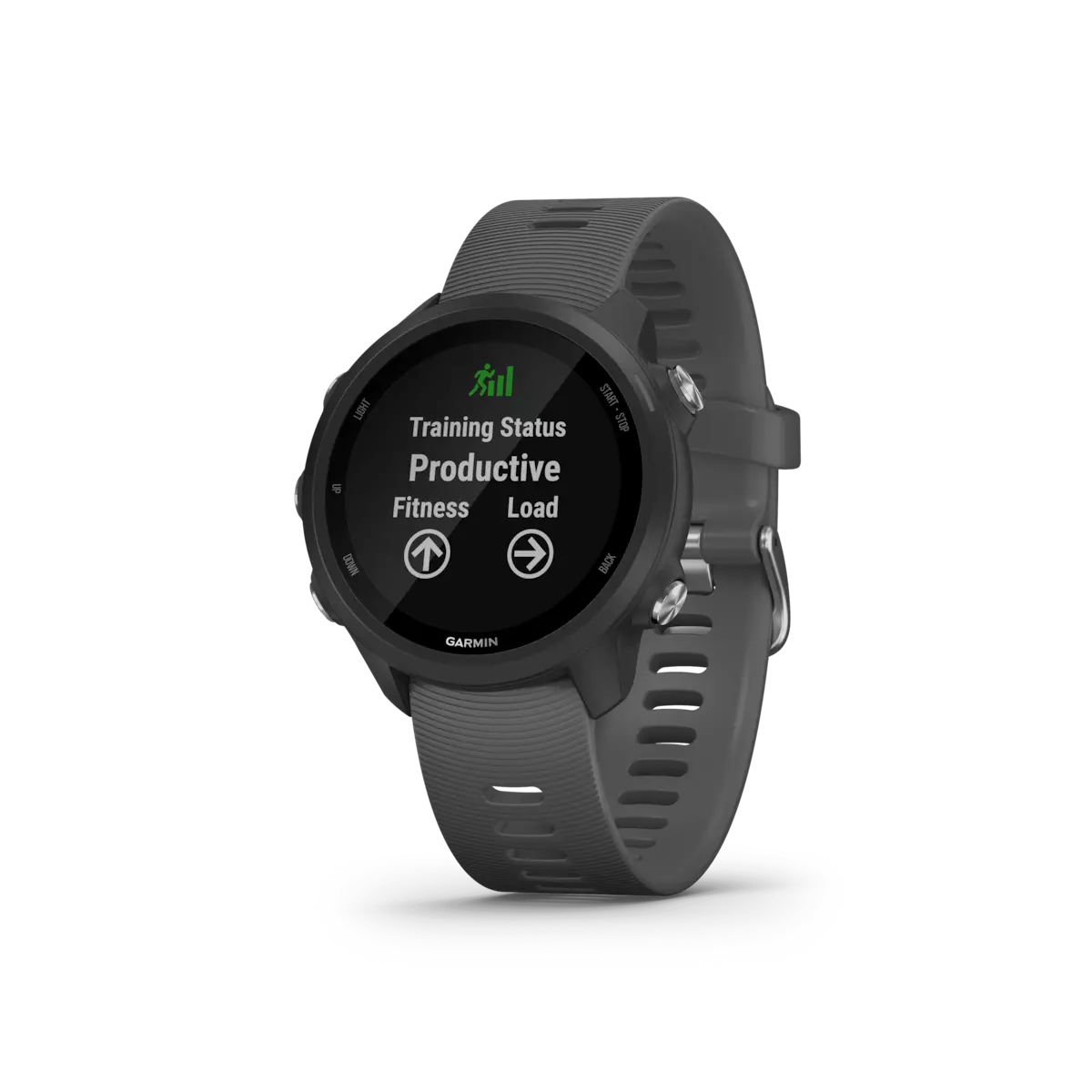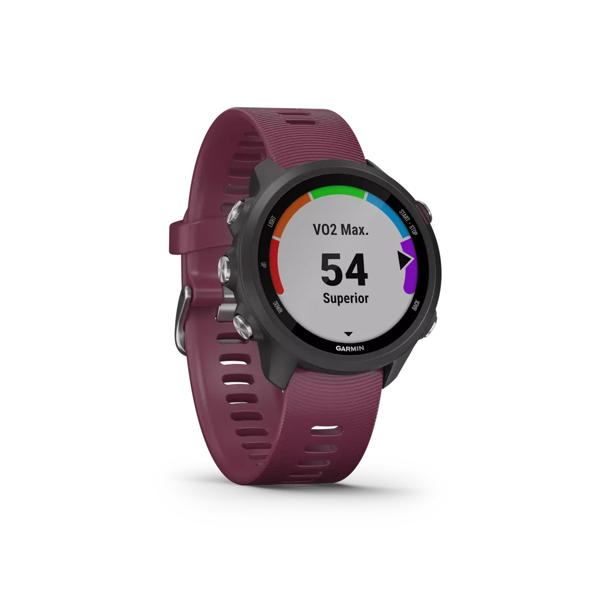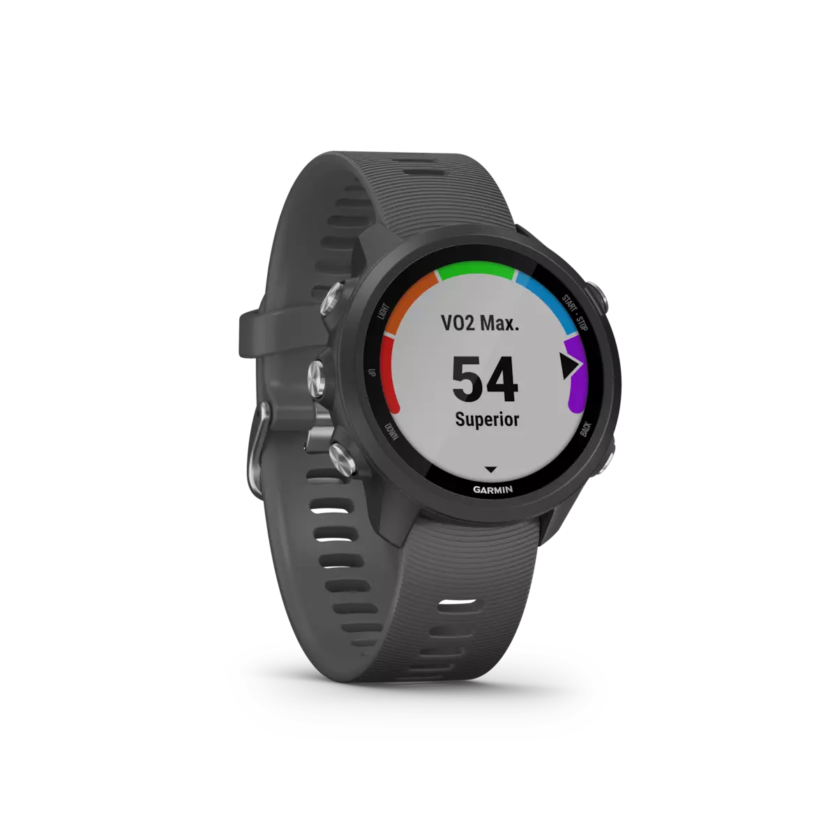 You do the running. Forerunner 245 does the thinking. This GPS smartwatch doesn’t just tell you where you ran.  It tracks your stats, crunches the numbers and gets to know all about your performance, your running form, your training history and even your goals.