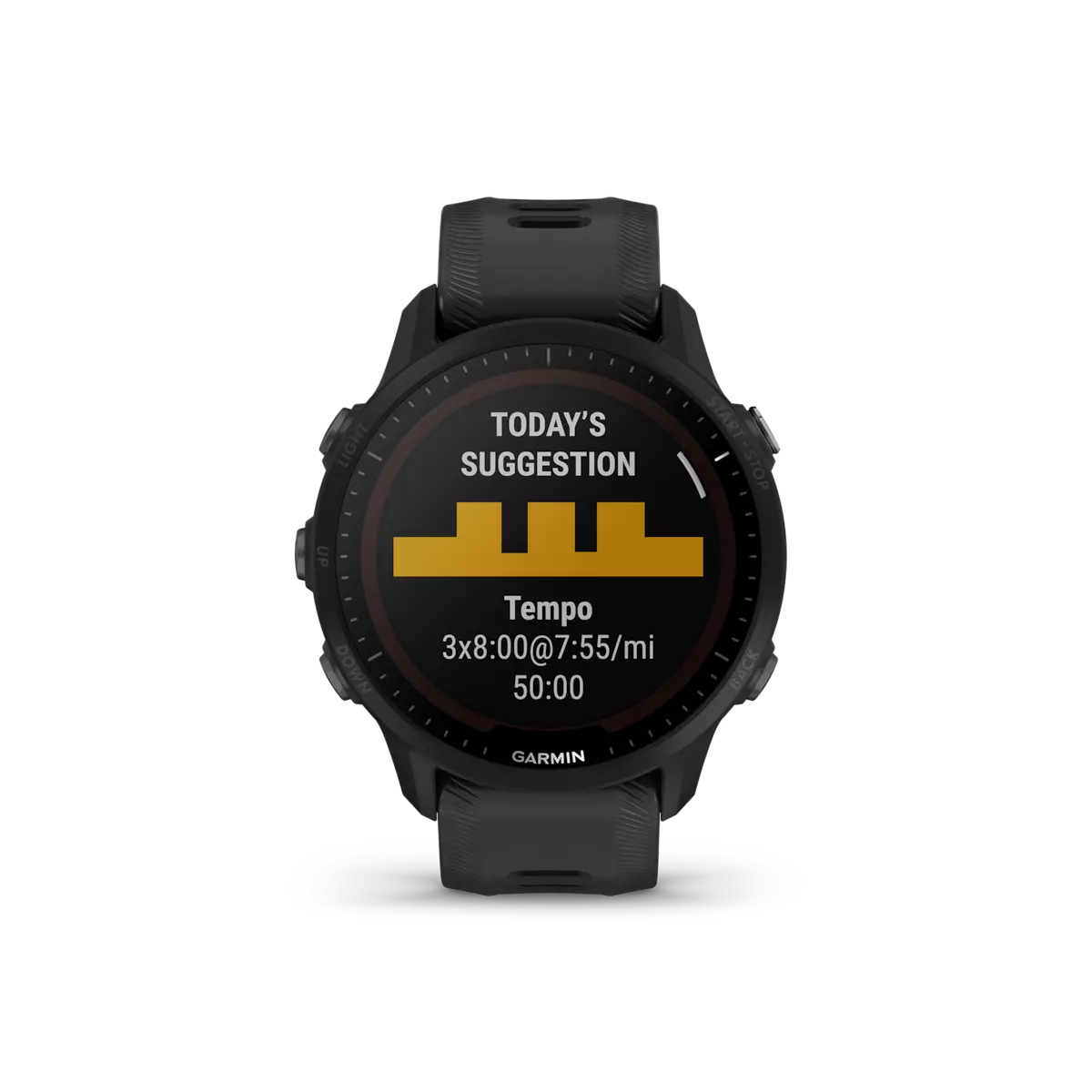 Lead the pack with Forerunner 955 Solar, the premium GPS running and triathlon smartwatch with Power Glass™ solar charging. The new training readiness feature tells you when you’re primed for a productive session, while daily suggested workouts give you a peek at the week ahead and adapt to your body after every run. With new multi-band GPS and full-color, built-in maps, you can navigate confidently — whether you’re in the race or just grabbing a post-run coffee with Garmin Pay™ contactless payments¹. And with traditional buttons and a touch display, it has never been easier to tap into your running power, running dynamics and music. If you’re pushing toward the podium — or to the very limits — Forerunner 955 Solar is by your side with up to 20 days of battery with solar charging in smartwatch mode² and improved insights such as VO2 max, training status and HRV status.