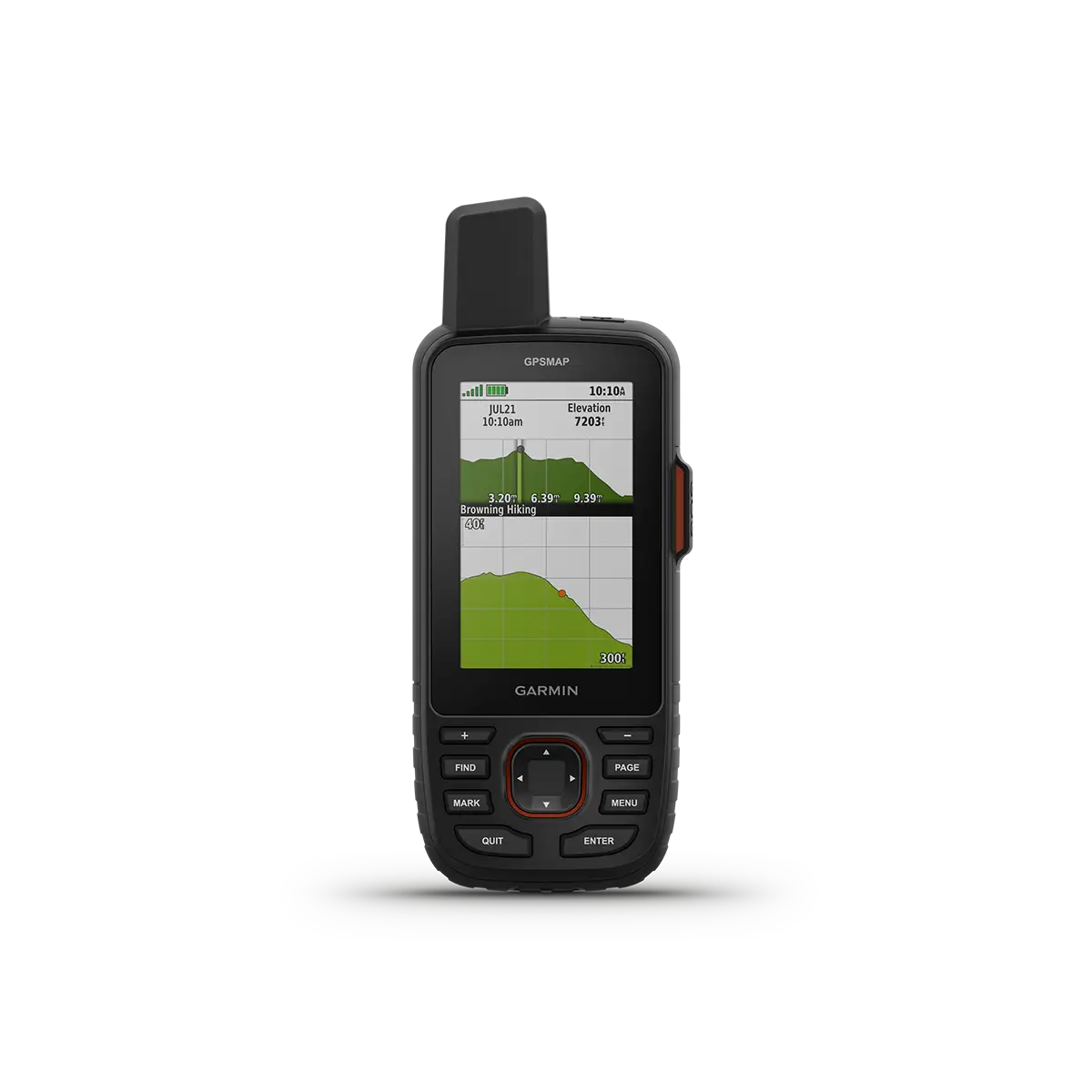 Whether you are hiking, biking, geocaching, hunting, fishing, or some other adventure, you can go explore the outdoors confidently with the GPSMAP 67i premium, rugged handheld. It offers multi-band technology and expanded GNSS support for enhanced accuracy in steep country, urban canyons and forests with dense trees. Includes multiple global navigation satellite systems (GPS, Galileo and QZSS). See your route clearly on the 3” sunlight-readable color display. The handhelds are packed with ABC (altimeter, barometer and compass) sensors, routable TopoActive mapping and access to satellite imagery. Pair them with your compatible smartphone to access active weather, Geocaching Live and the Garmin Explore™ app, plus get access to additional mapping content with the Outdoor Maps+ subscription. The GPSMAP 67i handheld offers up to 165 hours of battery life in tracking mode and up to 425 hours in expedition mode. The GPSMAP 67i comes with built-in inReach® technology that enables two-way messaging and location sharing¹, plus it lets you trigger an interactive SOS message to the Garmin Response team, a 24/7 staffed emergency response coordination center.