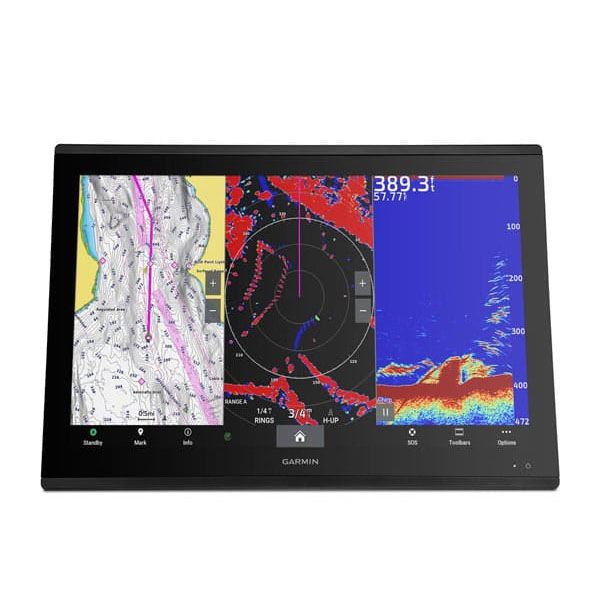 Garmin GPSMAP 8624 large-format multifunction display (MFD) features a 24-inch full HD screen with touch control. Sunlight-readable, anti-glare display is exceptionally easy to view and also includes auto-dimming feature for use in low light or at night for day or night boating. New maximum glass design enables you to experience a beautifully powerful, completely networked helm at your fingertips. In-plane switching (IPS) LCD display — an industry first for this class — provides consistent, accurate colors from all viewing angles. It also provides standard USB touch output for use as a touchscreen monitor for Windows® and Mac® operating systems. Install multiple displays with the industry’s lowest flush-mount profile or flat mount them edge-to-edge to create a sleek glass helm look. Quick, 1-touch access to the information you need makes boating easier.