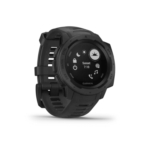 When you can rely on Instinct, the world can rely on you. This rugged, reliable outdoor GPS watch is built to the U.S. military standard 810G for thermal, shock and water resistance (rated to 100 meters). The fiber-reinforced polymer case adds strength and durability, and the chemically-strengthened, scratch-resistant display is high-contrast enough to read in bright sunlight, so you can take it with you into the extremes you face every day. Plus, the fully vented silicone bands include two independent, removable keeper loops to ensure a secure fit and to keep you from getting caught on things.