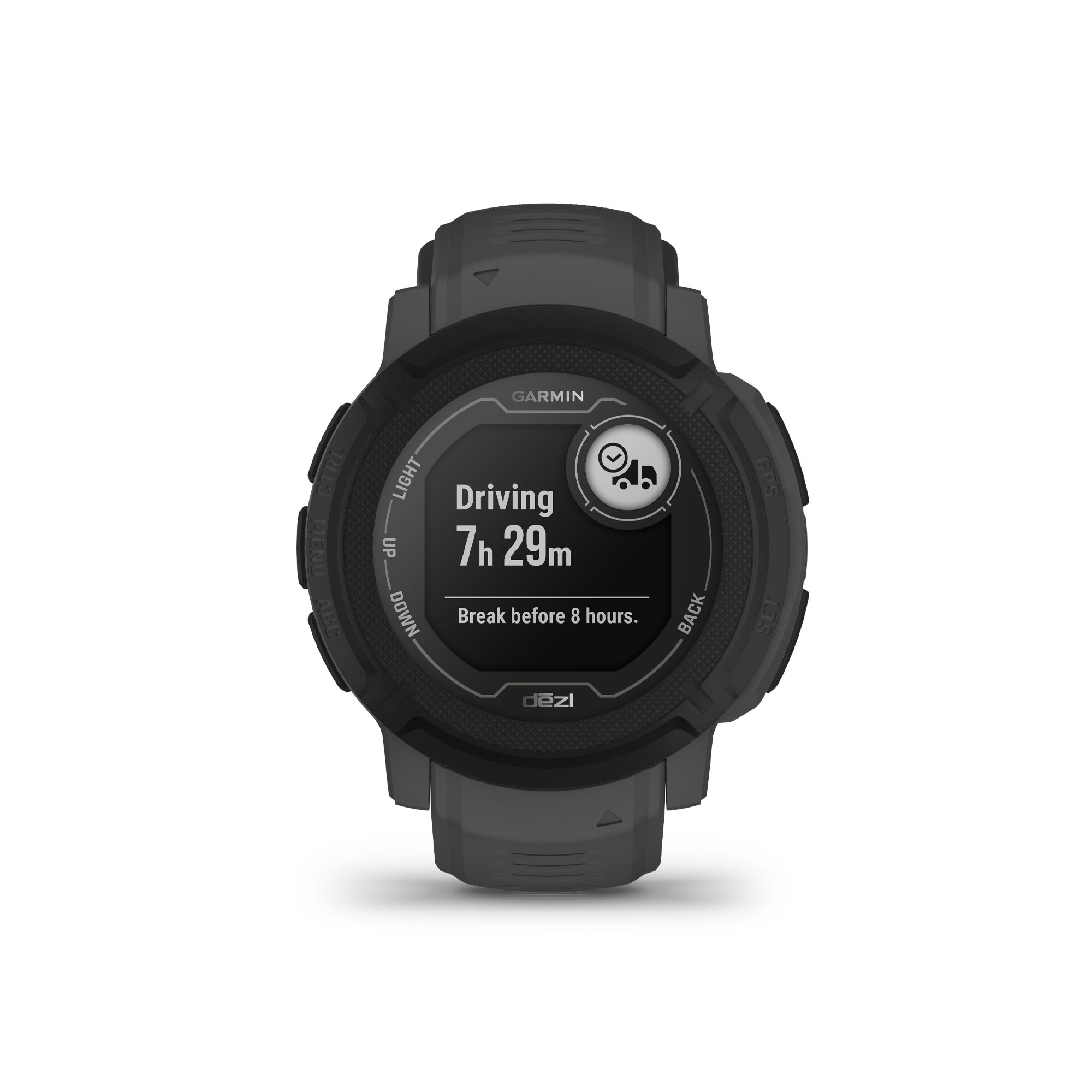 Instinct 2 – dezl Edition is a rugged smartwatch designed specifically for professional truck drivers who want trackable health metrics, short-break workouts and daily conveniences designed for healthy over-the-road lifestyles. Enjoy all-day health monitoring features that track your heart rate1, sleep, Pulse Ox2, respiration and more. Pair this watch with the dezl™ app on your compatible smartphone for workout tutorials that fit within standard break times. When using the dezl app, take advantage of truck plaza loyalty programs with some of the nation’s most popular travel centers, and breeze through checkouts with Garmin Pay™ contactless payments3. Save time and improve efficiency with PrePass® U.S. weigh station and bypass notifications4 viewed right on your watch, using your active PrePass account.