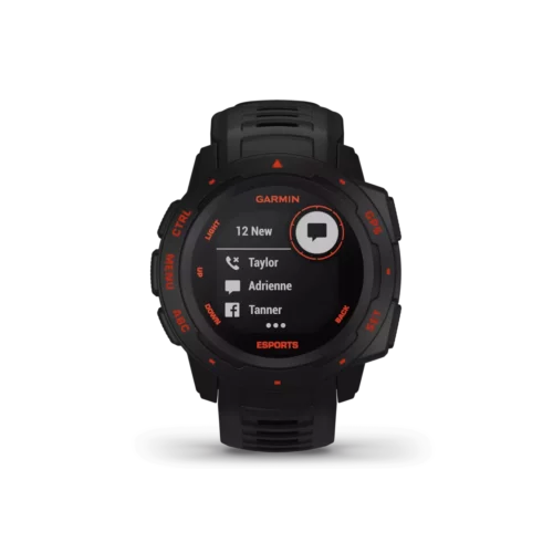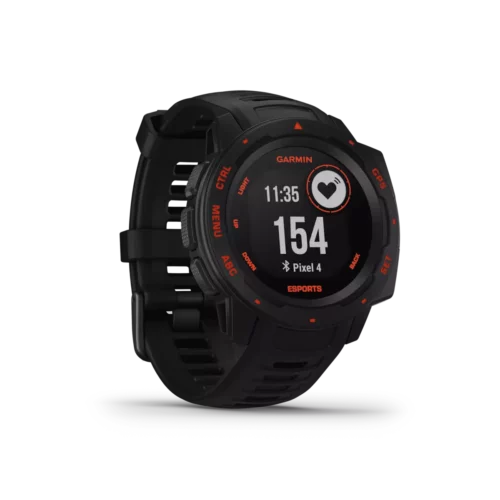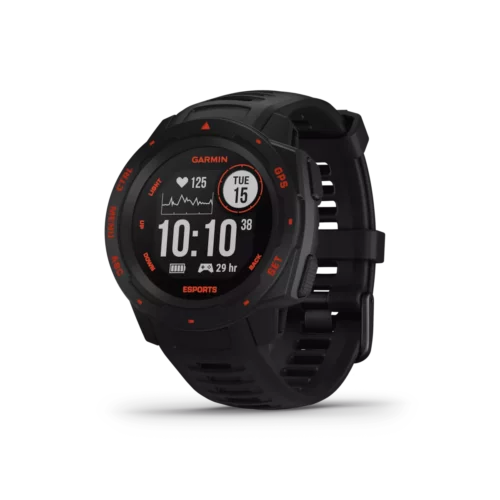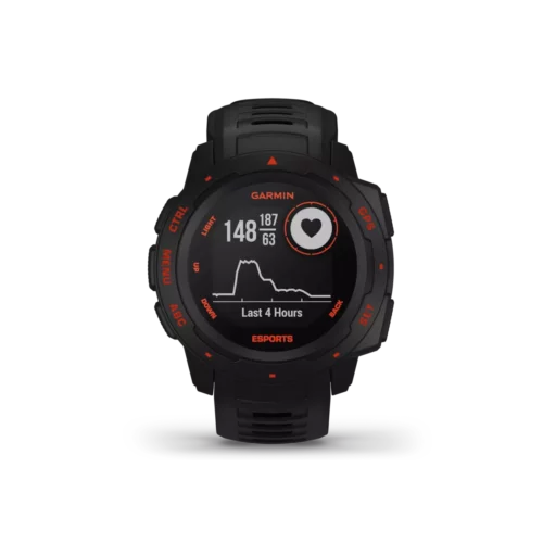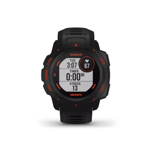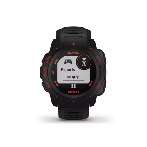Elevate your game with Instinct — Esports Edition. This GPS smartwatch for Esports athletes has a dedicated Esports activity profile — allowing users to track, analyze, and broadcast their biometrics while gaming. The aggressive black and red design creates a bold look for bold plays.