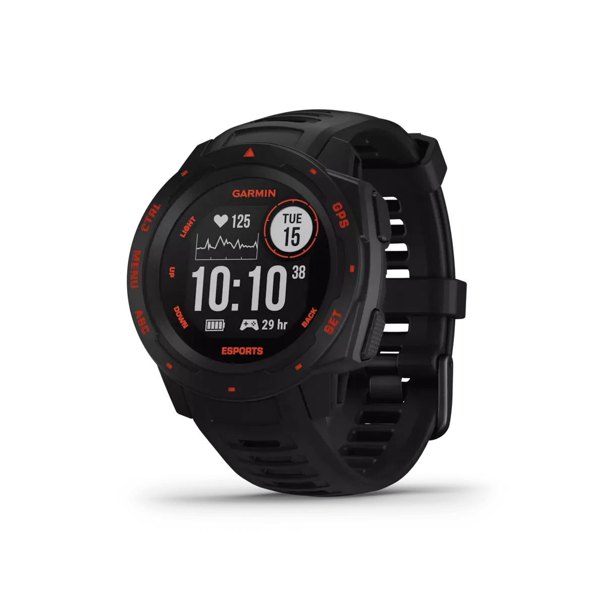 Elevate your game with Instinct — Esports Edition. This GPS smartwatch for Esports athletes has a dedicated Esports activity profile — allowing users to track, analyze, and broadcast their biometrics while gaming. The aggressive black and red design creates a bold look for bold plays.