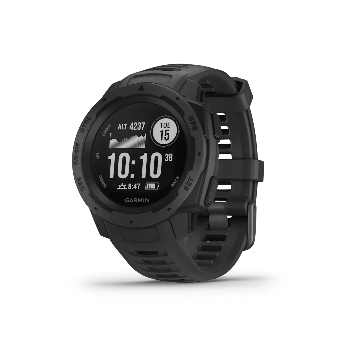 When you can rely on Instinct, the world can rely on you. This rugged, reliable outdoor GPS watch is built to the U.S. military standard 810G for thermal, shock and water resistance (rated to 100 meters). The fiber-reinforced polymer case adds strength and durability, and the chemically-strengthened, scratch-resistant display is high-contrast enough to read in bright sunlight, so you can take it with you into the extremes you face every day. Plus, the fully vented silicone bands include two independent, removable keeper loops to ensure a secure fit and to keep you from getting caught on things.