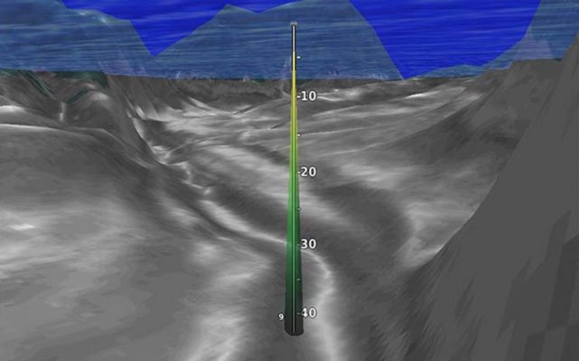 This view provides a 3-D representation of the surrounding area both above and below the waterline.