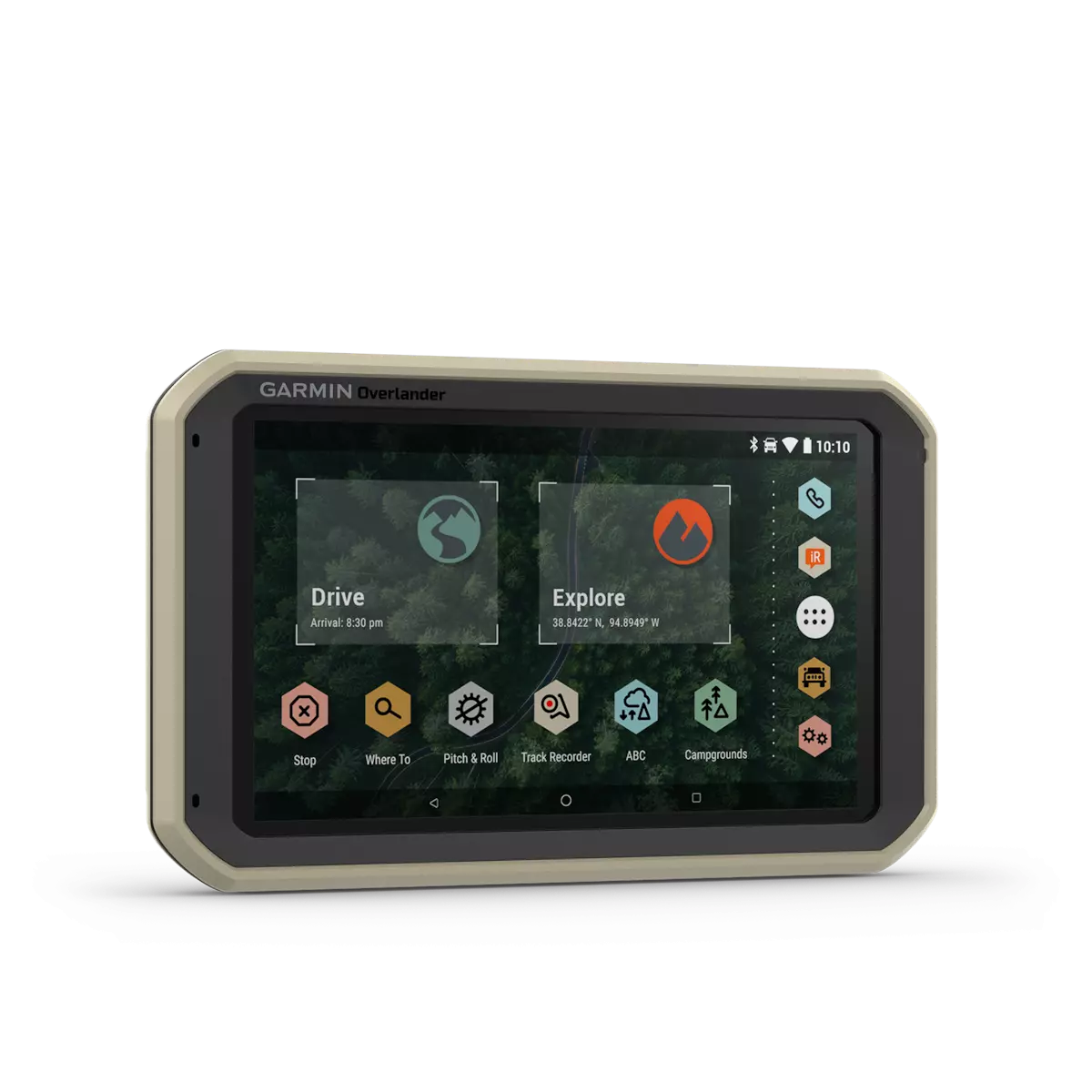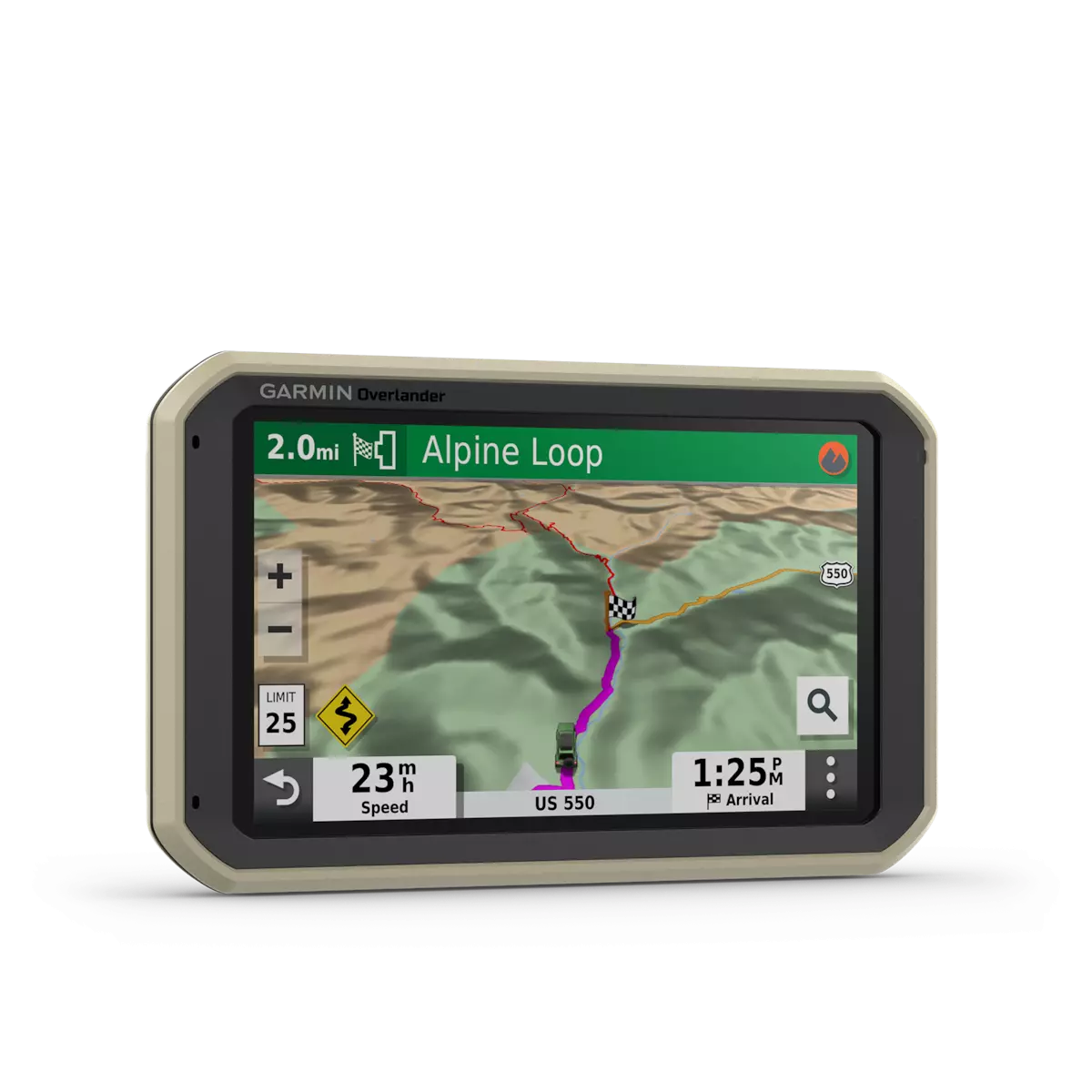 Built for every part of the journey, Garmin Overlander is a rugged, all-terrain navigator that can easily switch from turn-by-turn directions for on-road navigation to topography maps for off-grid guidance in North and South America.