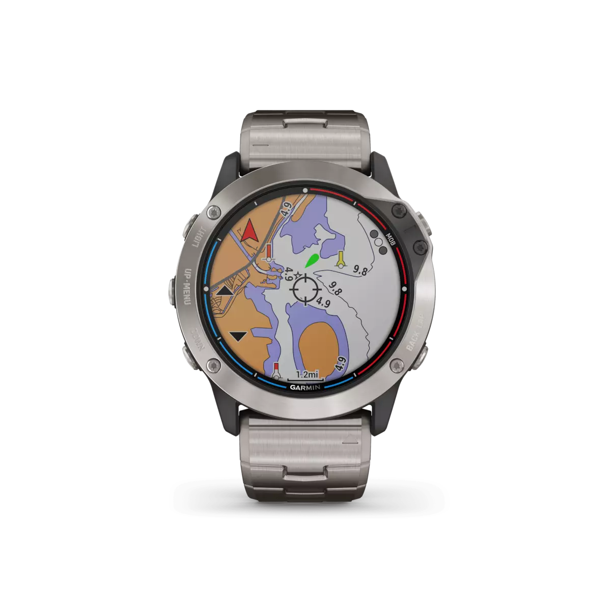 quatix 6 Solar supports premier coastal charts featuring integrated Navionics® data.