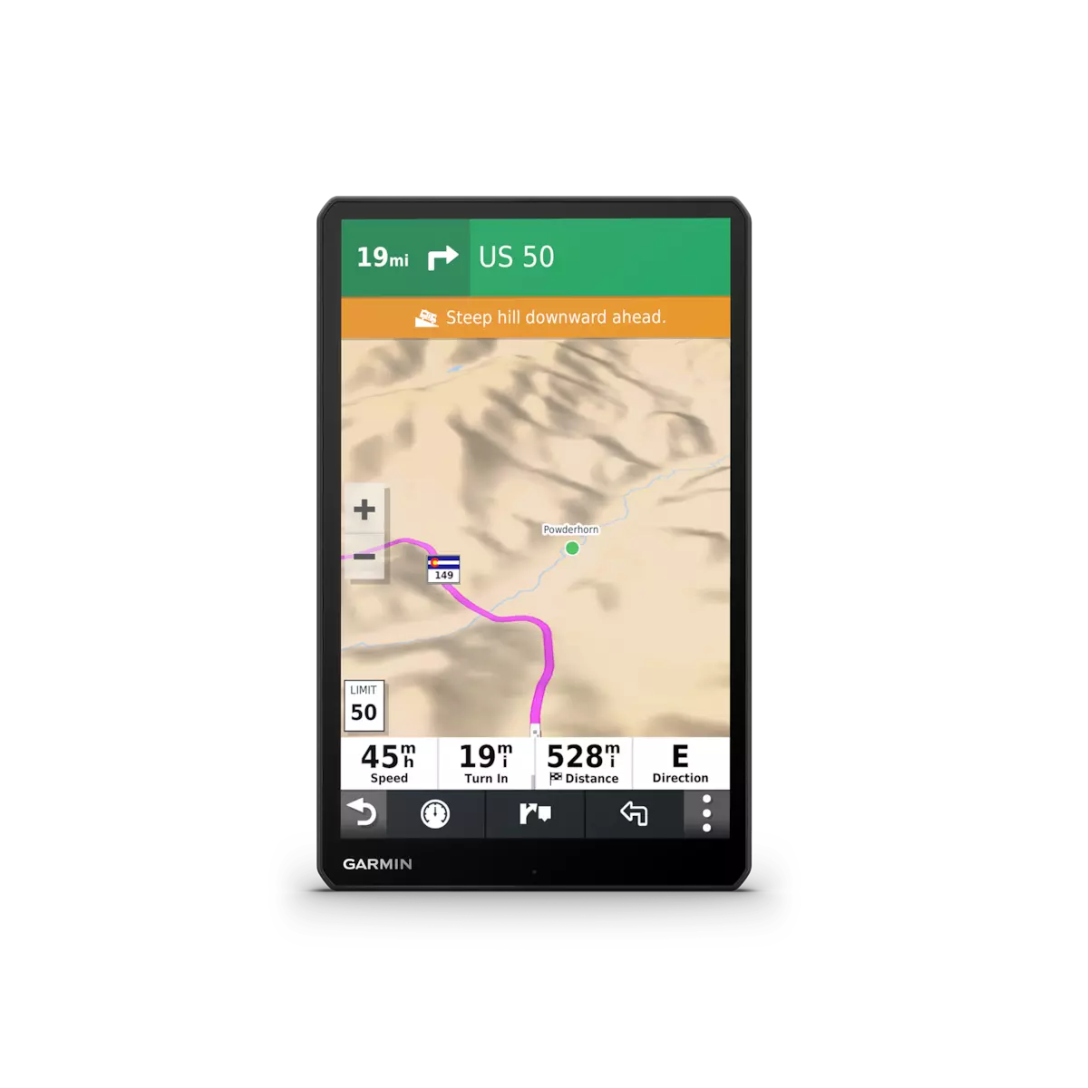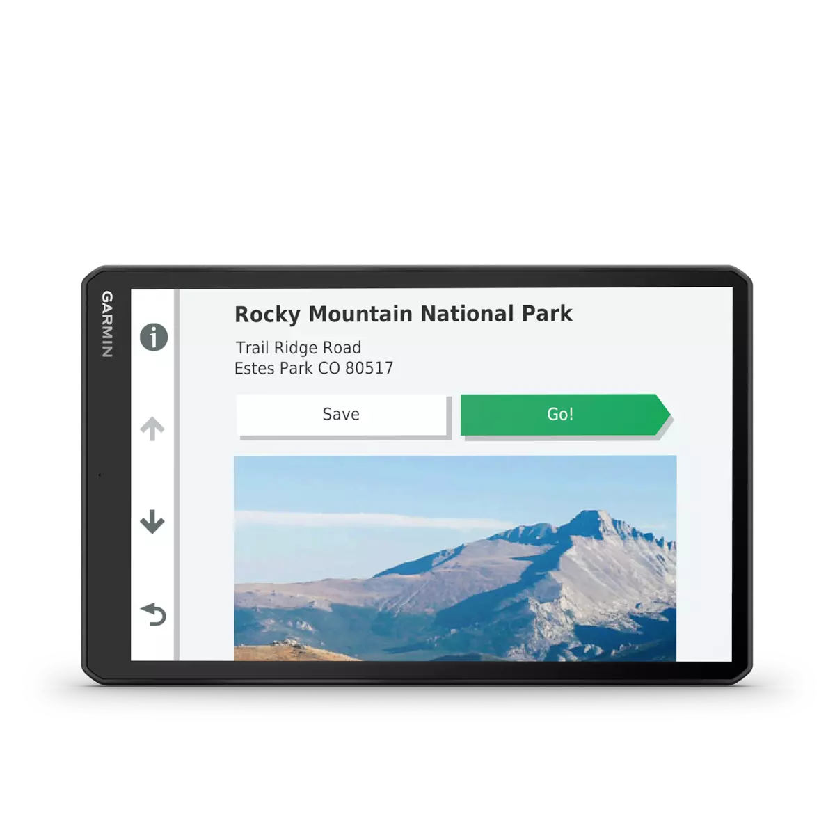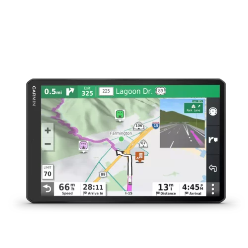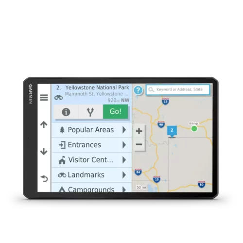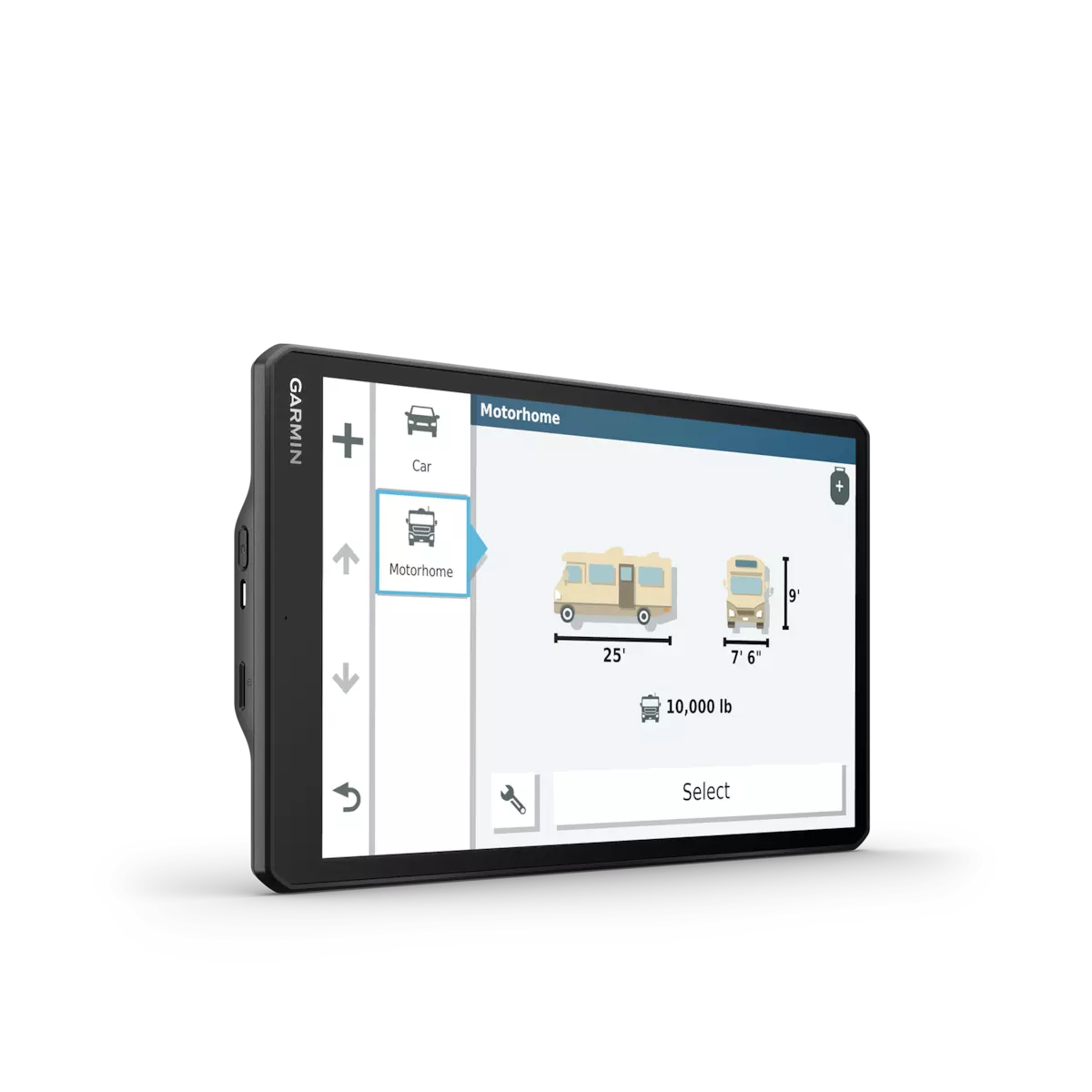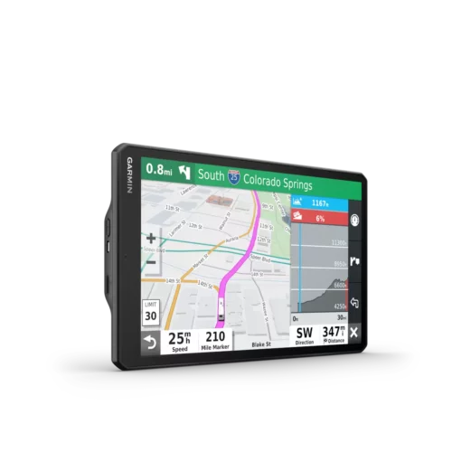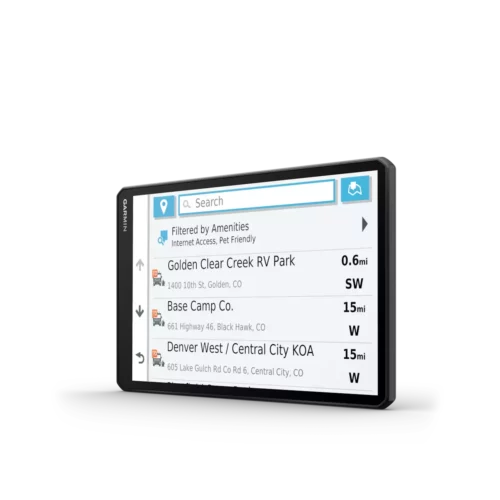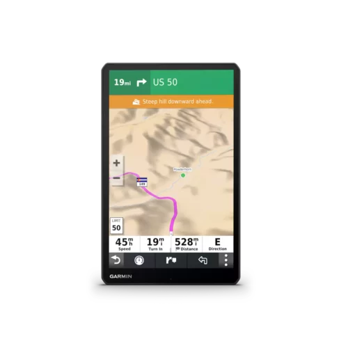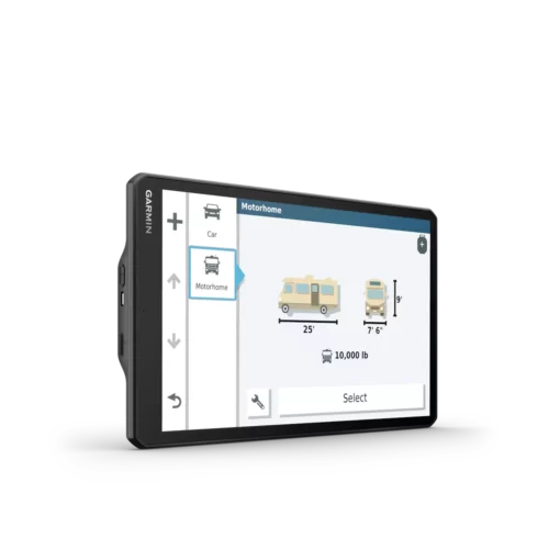 RV 1090 creates custom routes to suit the size and weight of your RV¹ and provides road warnings for steep grades, sharp curves and more on the large, 10” display.