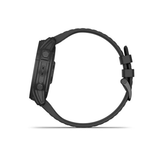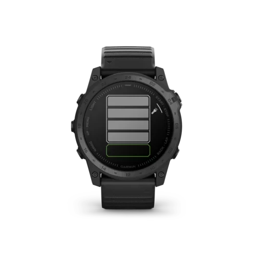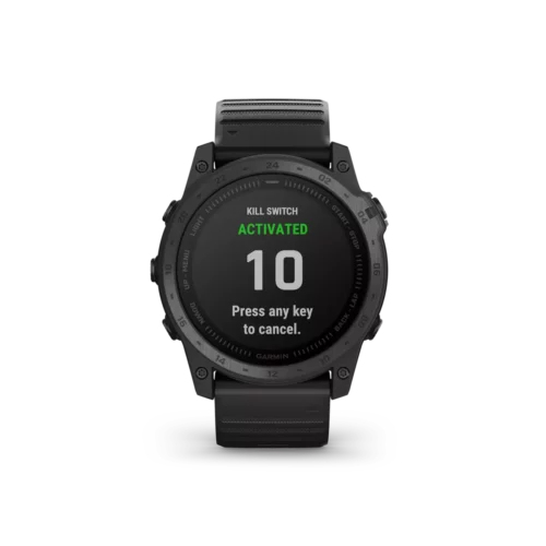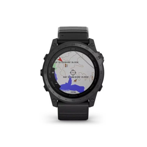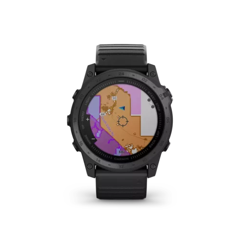 tactix 7 is the tactical multisport GPS smartwatch with traditional button controls and a touchscreen display. Featuring a rugged yet sophisticated design, tactix 7 has an always-on 1.4” display, custom front bezel design, black DLC-coated titanium bezel and black PVD coated titanium rear cover. Mission-ready tactical features include a sapphire lens with dimmable white or green LED flashlight, night vision compatible display, preloaded tactical and aviation features, dual-position GPS formatting, Jumpmaster mode, projected waypoints, stealth mode and kill switch. Navigate the harshest environments with elite navigation featuring preloaded TopoActive and ski maps plus multi-band and multi-GNSS support. Pilots will appreciate new aviation features such as Direct-to and Nearest airports, METARs/TAFs and NEXRAD weather radar. The tactix 7 smartwatch also includes advanced training and performance tracking such as real-time stamina, comprehensive health and wellness monitoring, and everyday functionality with smart notifications¹, Garmin Pay™ contactless payments² and more.