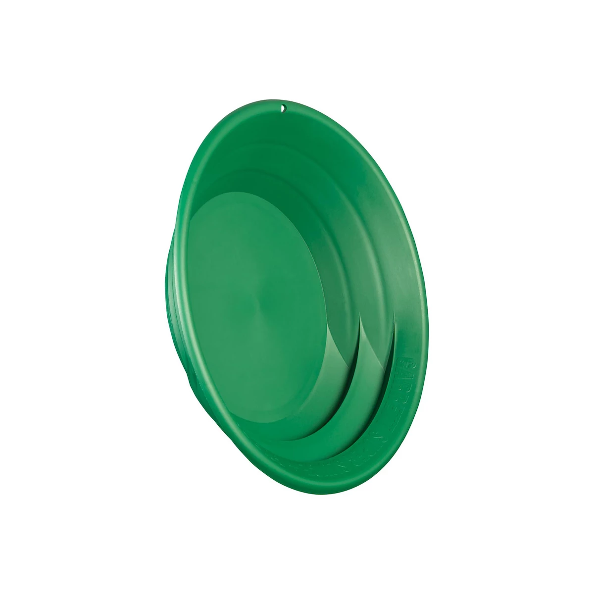 Garrett’s gold pans feature a 90° riffled design that ensures safe, sure, rapid gold recovery in wet or dry conditions. All Garrett pans are lightweight, green for enhanced gold nugget visibility, and virtually indestructible. Tested and proven worldwide by Charles Garrett, Roy Lagal and tens of thousands of prospectors, Garrett’s gold pans are a must for every recreational and electronic gold seeker.