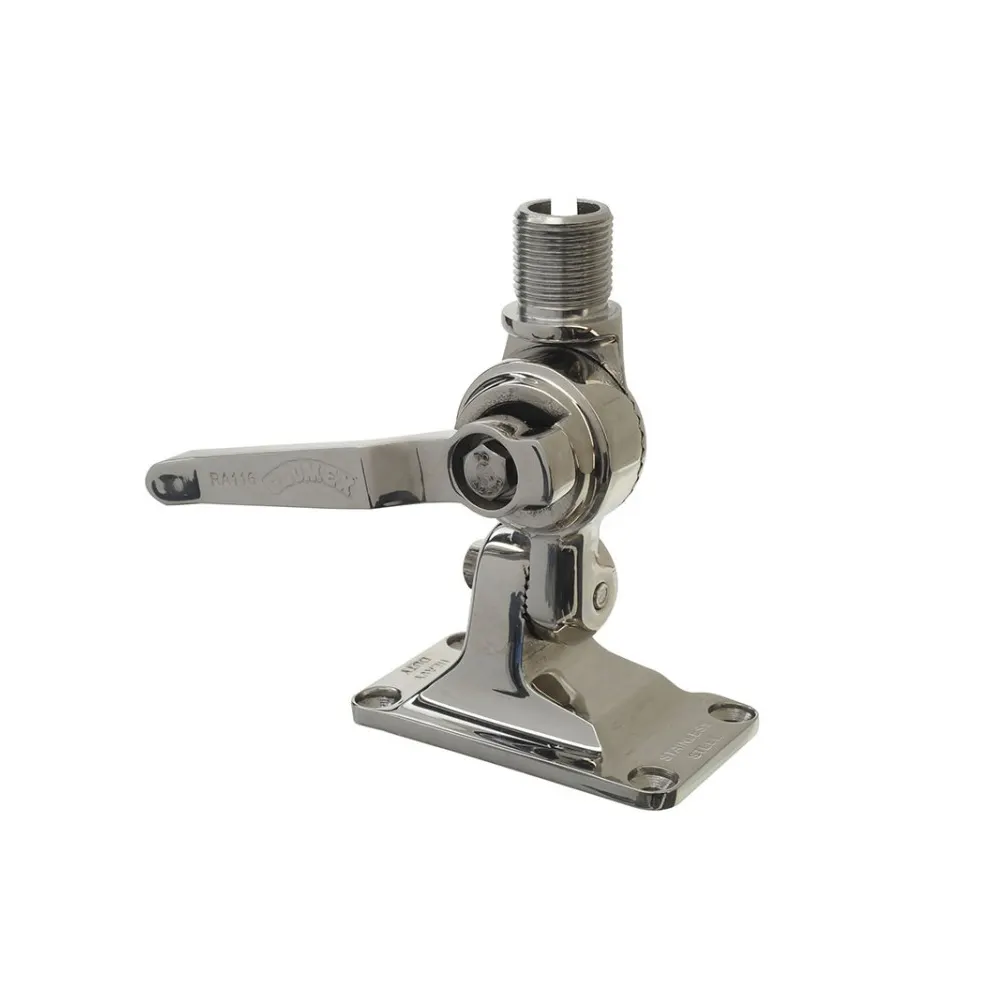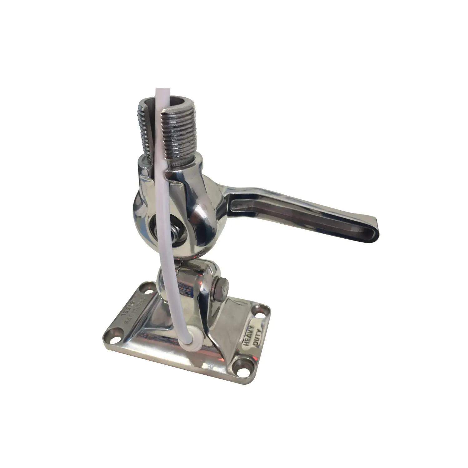 Heavy duty 4 way ratchet mount polished stainless steel design with handle, for deck or bulkhead.