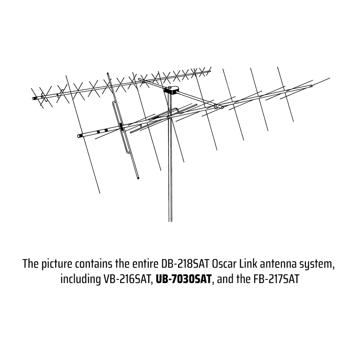 Most hardware is stainless steel including the element pushnuts. All insulators are UV protected. The coaxial assemblies are made from high-quality Polytetrafluoroethylene (PTFE) dielectric and Fluorinated Propylene (FEP) jacketed coax cable. The 70-30 SAT “OSCAR” antenna can be used with the Hy-Gain 216 SAT 2-meter “OSCAR” antenna and the 217S fiberglass 5 foot boom, or it can be used with other commercial or homebrew “OSCAR” antennas. The 70-30 SAT antennas may be stacked for more gain.