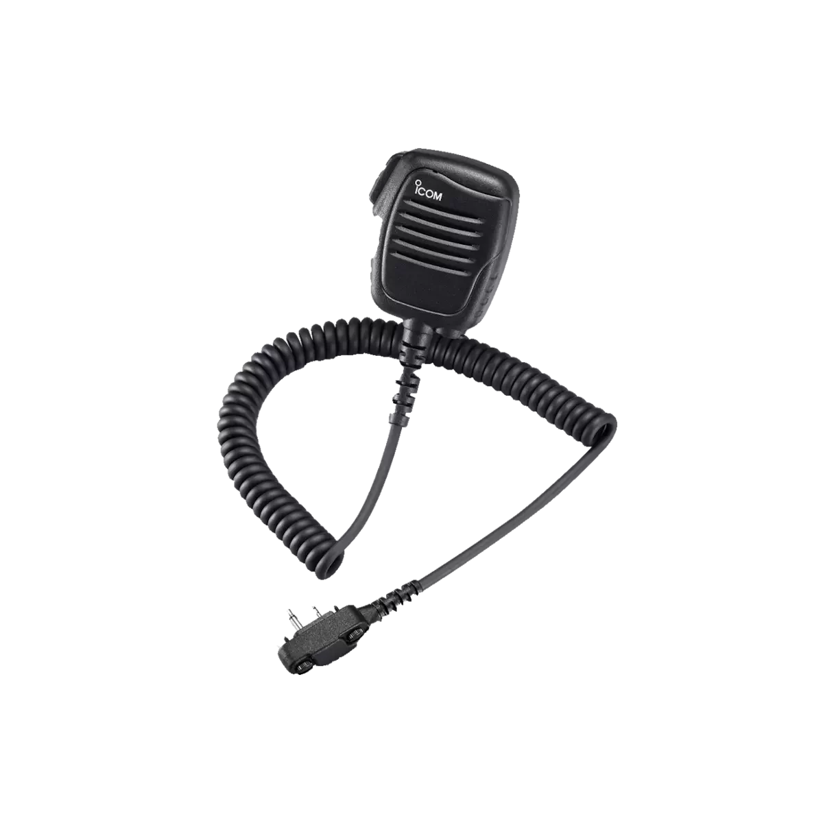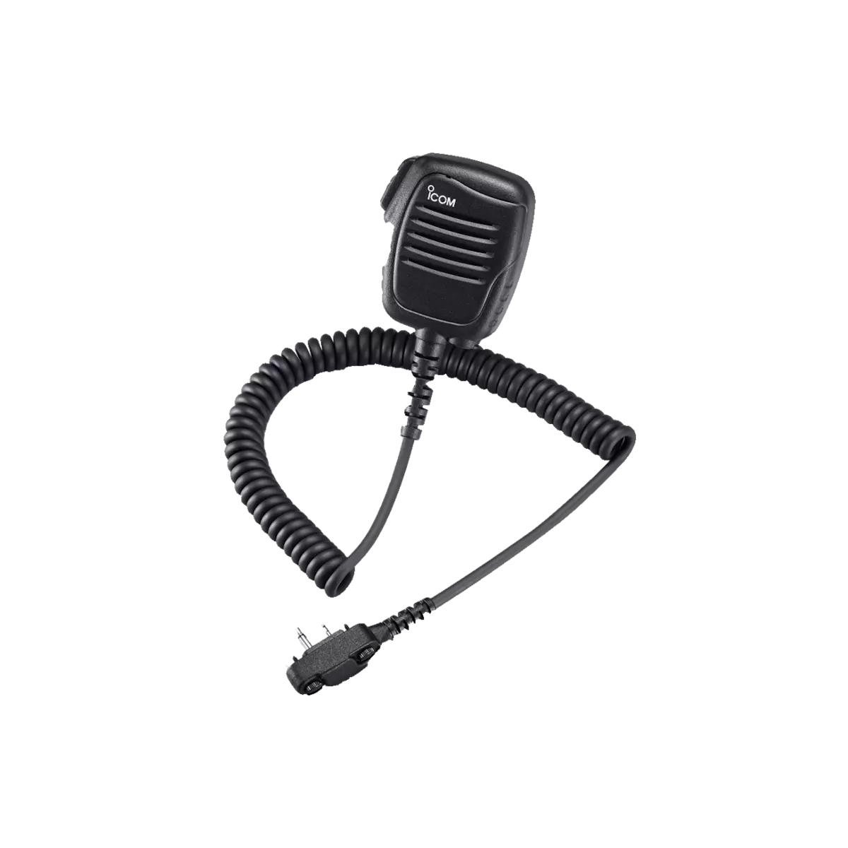 Large speaker microphone with earphone jack and metal alligator clip (right angle 2-pin screw down connector, stereo mic/mono speaker). Listen only port (3.5mm).