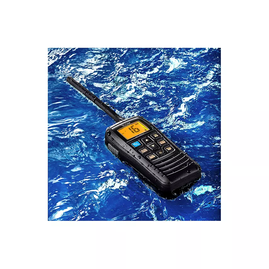 Designed for commercial and recreational boaters, the M37 comes with 6 watts of power for further communications range. The M37 includes all the great features in the M36, plus Icom’s exclusive Float’n Flash and a larger capacity standard battery.