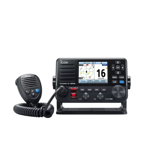 Icom’s new Class D DSC fixed mount VHF marine transceiver, the M510 is a tech-laden powerhouse available with or without AIS receive capability. The M510 is nearly half the depth of the M506, allowing installation in more confined spaces. The large color display has a simple user interface allowing casual and serious boaters alike with plenty of options to communicate. Additionally, command and control using iOS® and Android™ smart devices with class leading features such as wireless calling.