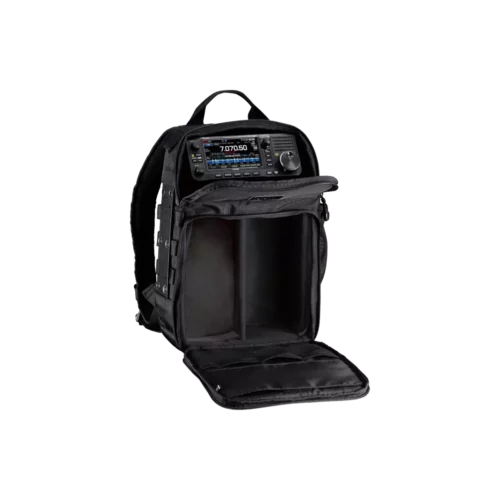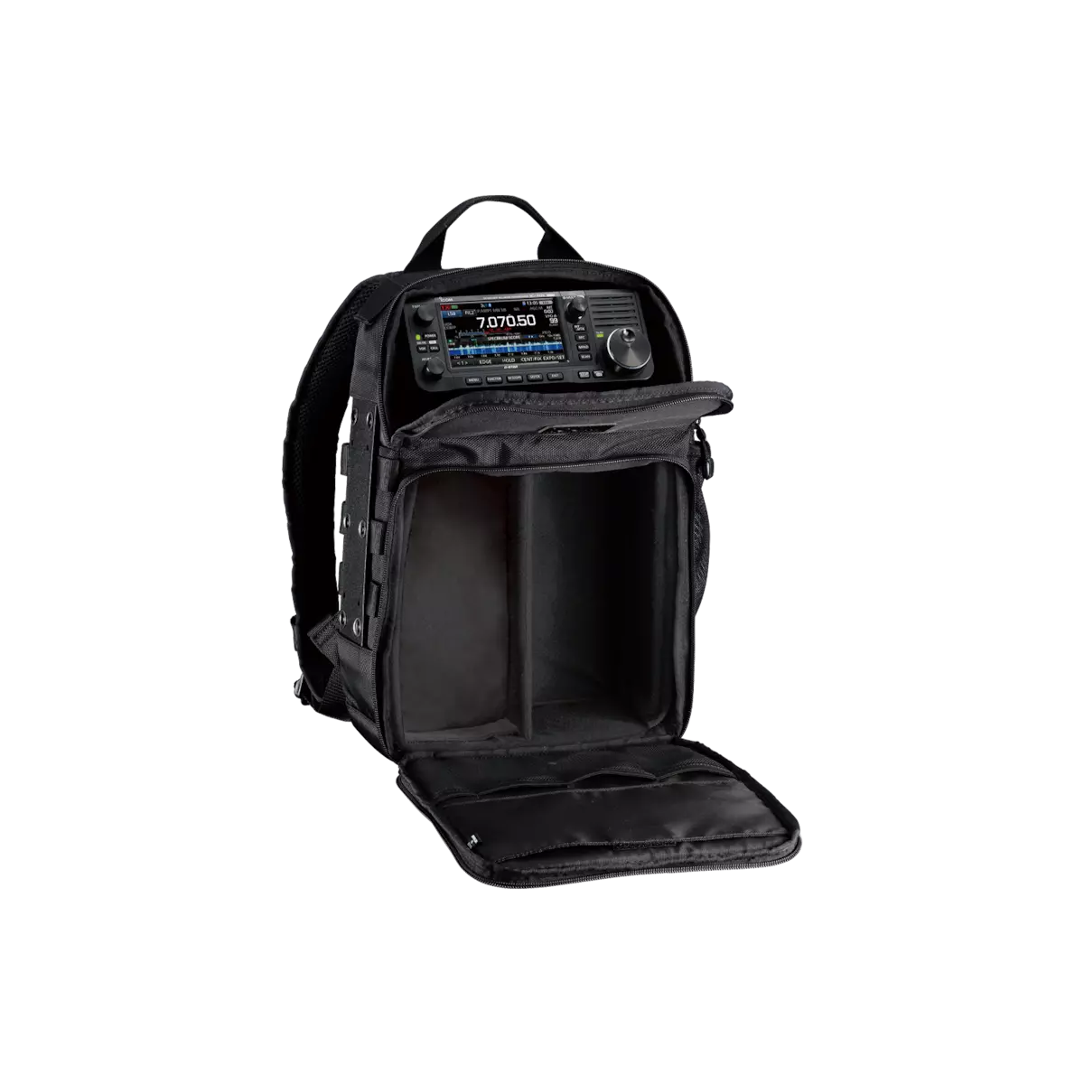The IC-705 fits perfectly in the optional LC-192 multi-function backpack. It has various features, such as ports for the antenna and for passing through coaxial and microphone cables. You can easily operate the IC-705 with it in the backpack.