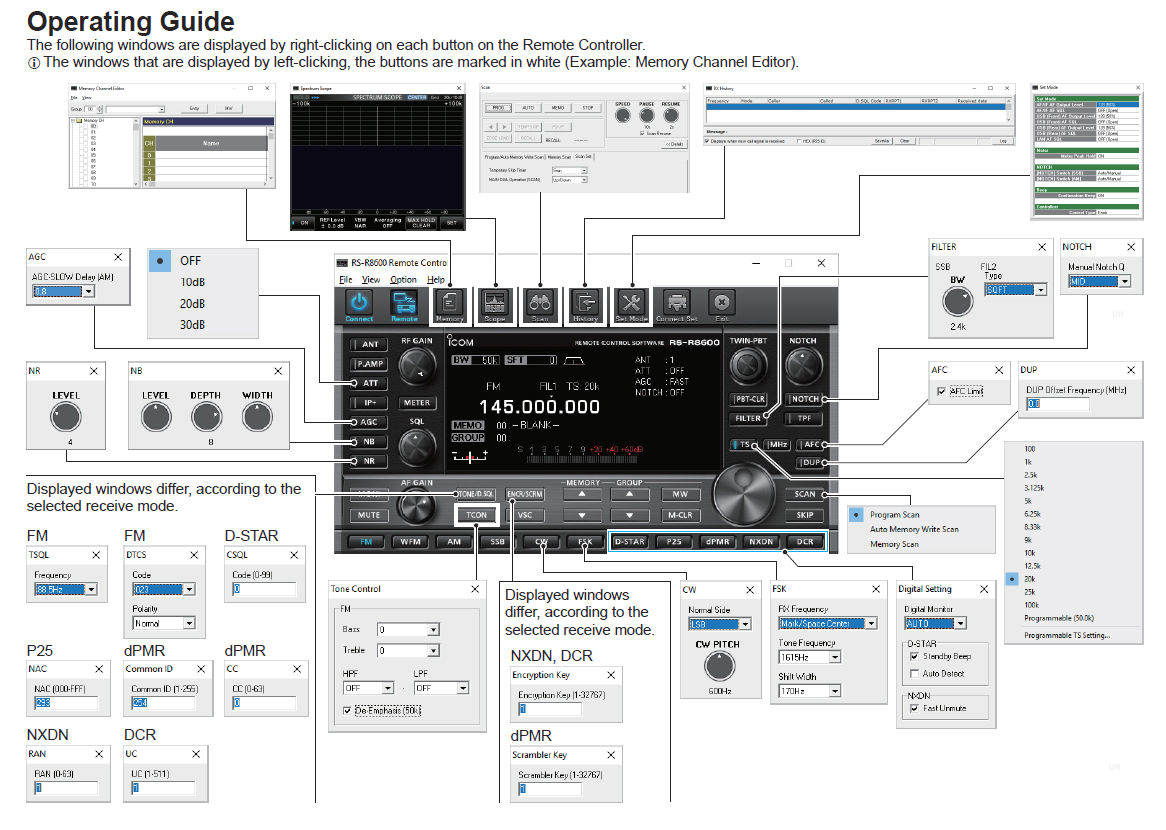 The Icom RS-R8600 IP Remote Control Software allows you to use an Icom compatible radio installed in another room using your home network or even from a remote location over the Internet. Most functions and modes of your IC-R8600 can be controlled.