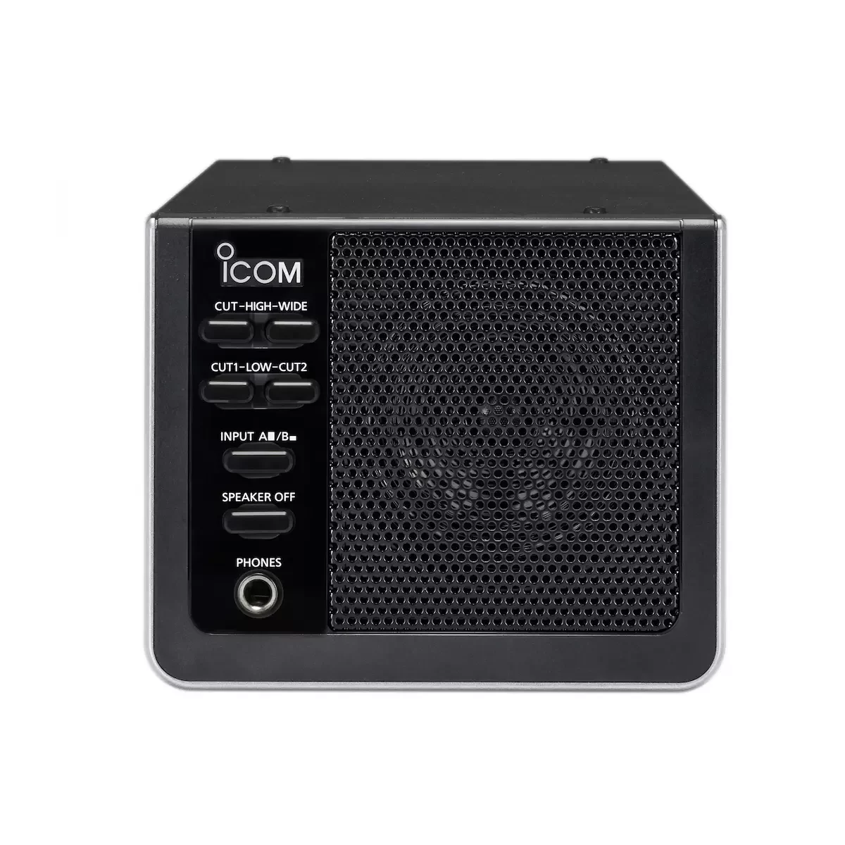 The Icom SP-41 speaker is designed to perfectly complement several of Icom’s communications products. The SP-41 is equipped with two tone select switches: High: Cut/Wide and Low: Cut1/Cut2. This allows you to filter and control of the audio characteristics of received signals. The SP-41 rear panel features two audio input jacks (3.5 mm mini jack). Input A or B may be selected from a switch on the front of the speaker. There is also a Speaker On/Off switch and a 1/4 inch headphone jack on the front panel. There is a flip-out tilt stand. Icom includes two high quality audio cables (3.5mm to 3.5mm).