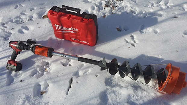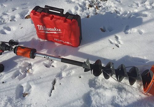 The sturdy aluminum constructed Auger Shaft with thermal wrap helps keep hands warm. Extensions are available too. K-Drill requires a 1/2” drill. The auger is adaptable for attachment to certain gas auger heads.